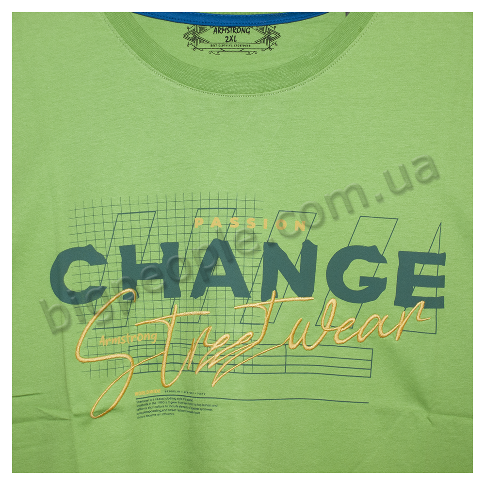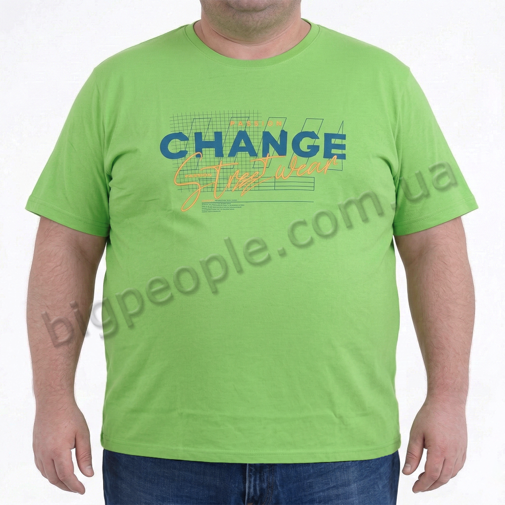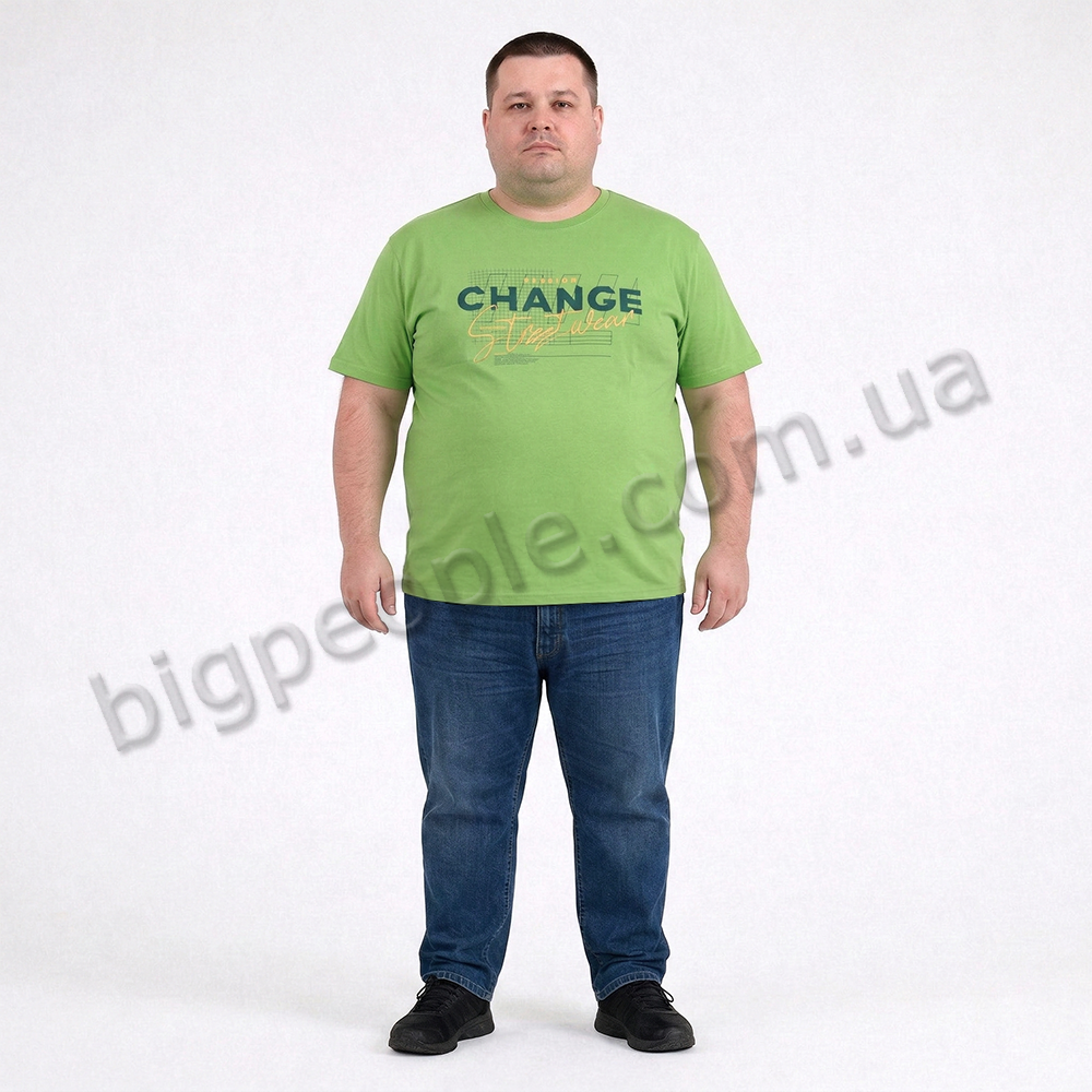 Мужская футболка ARMSTRONG, большого размера. Цвет зеленый. Низ изделия прямой, без манжеты. На модели присутствует оригинальный принт. Производство Турция. Состав cotton (хлопок) 100%.