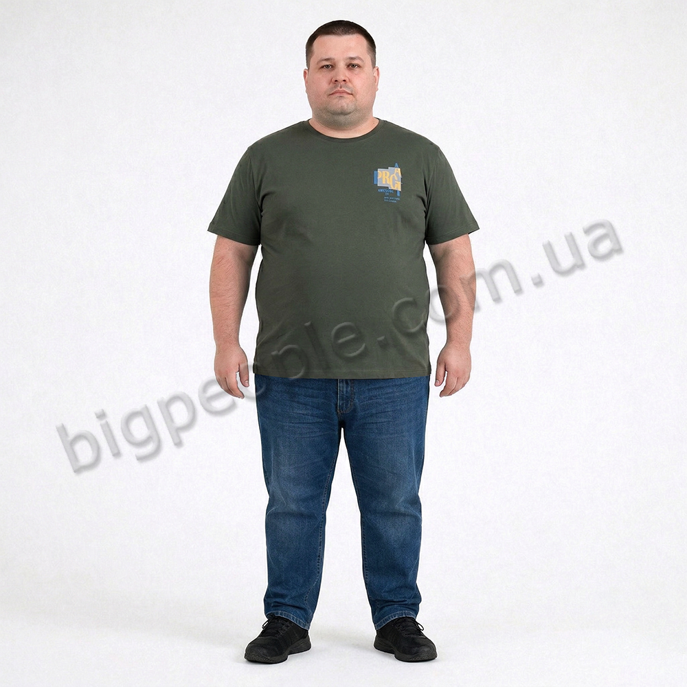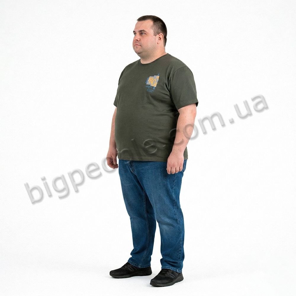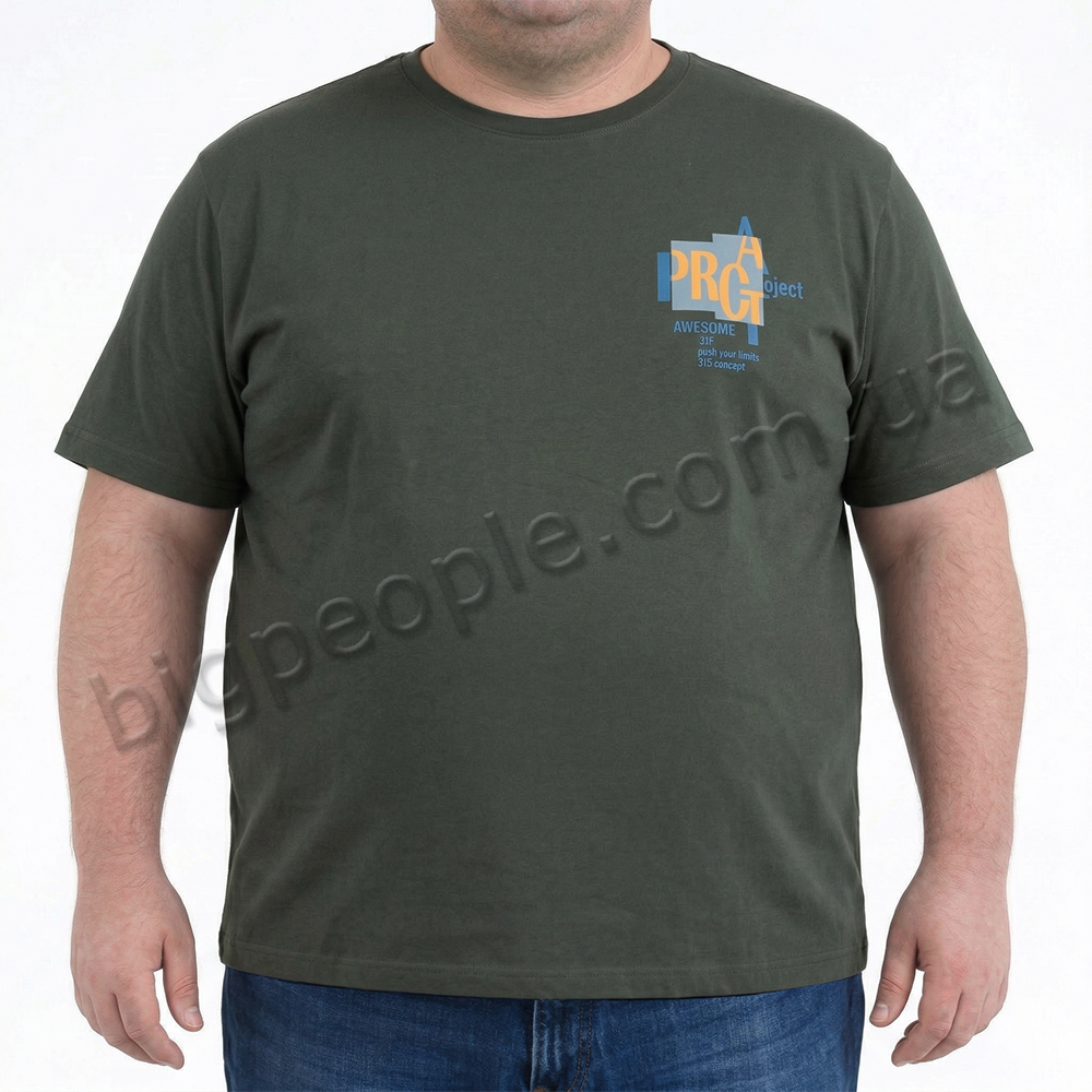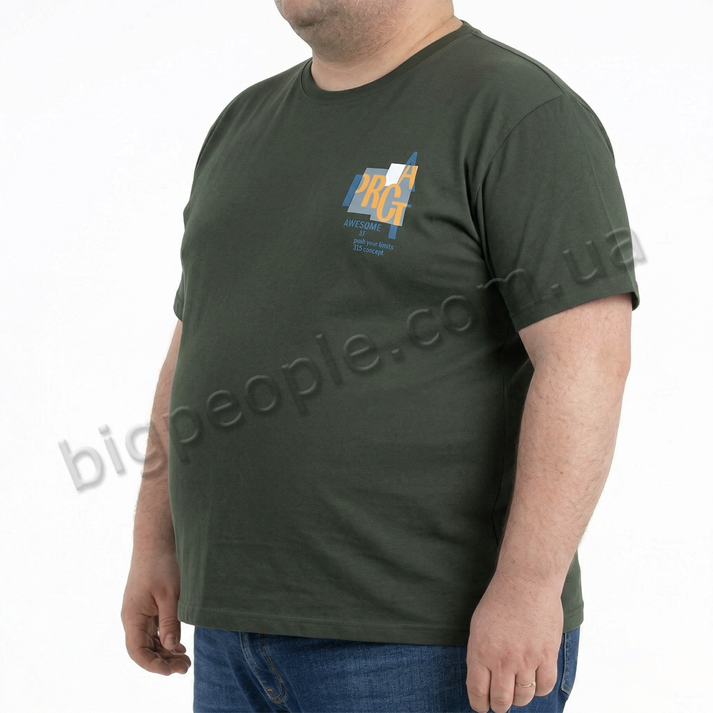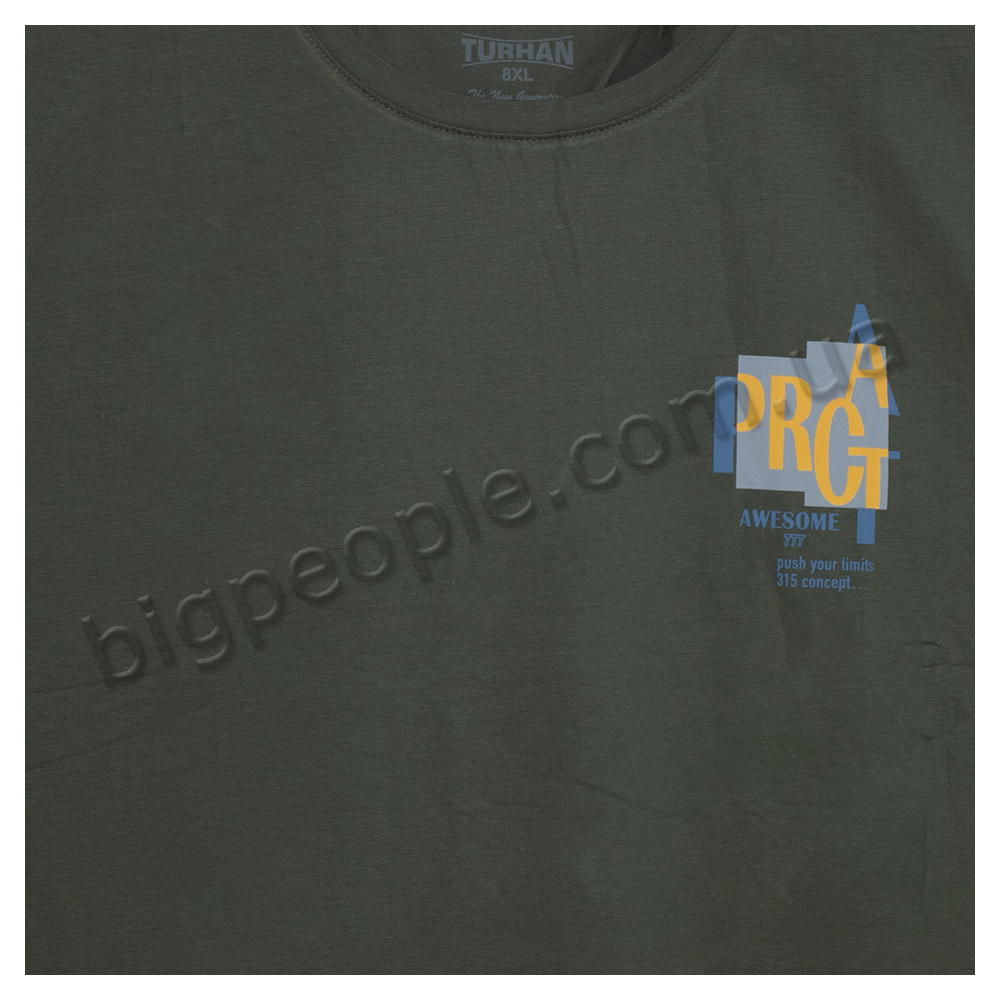 Футболка TURHAN для больших мужчин. Цвет хаки. Впереди небольшой принт. Низ прямой. Производство Турция. Состав cotton (хлопок) 95%, эластан 5%.