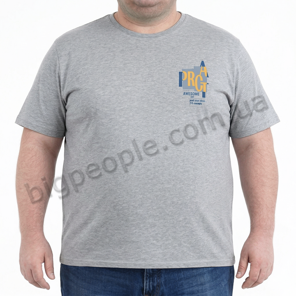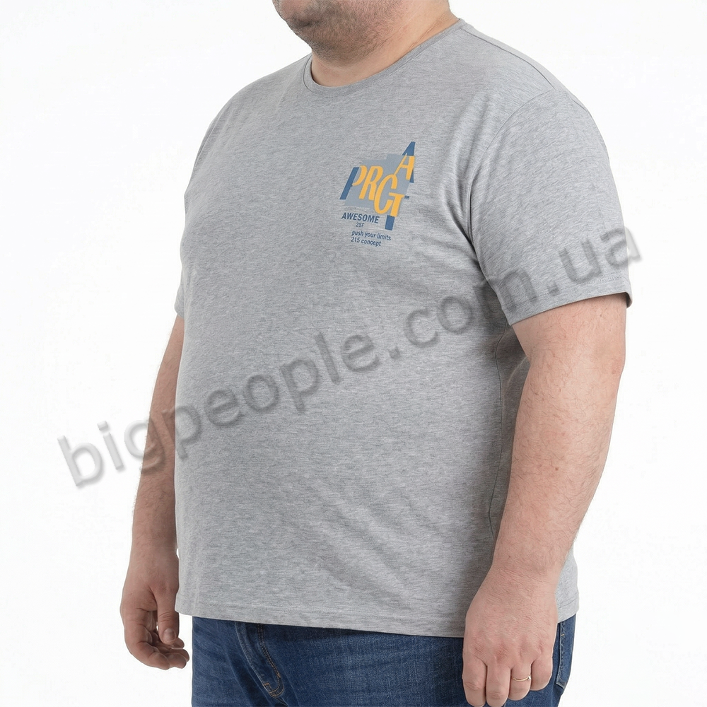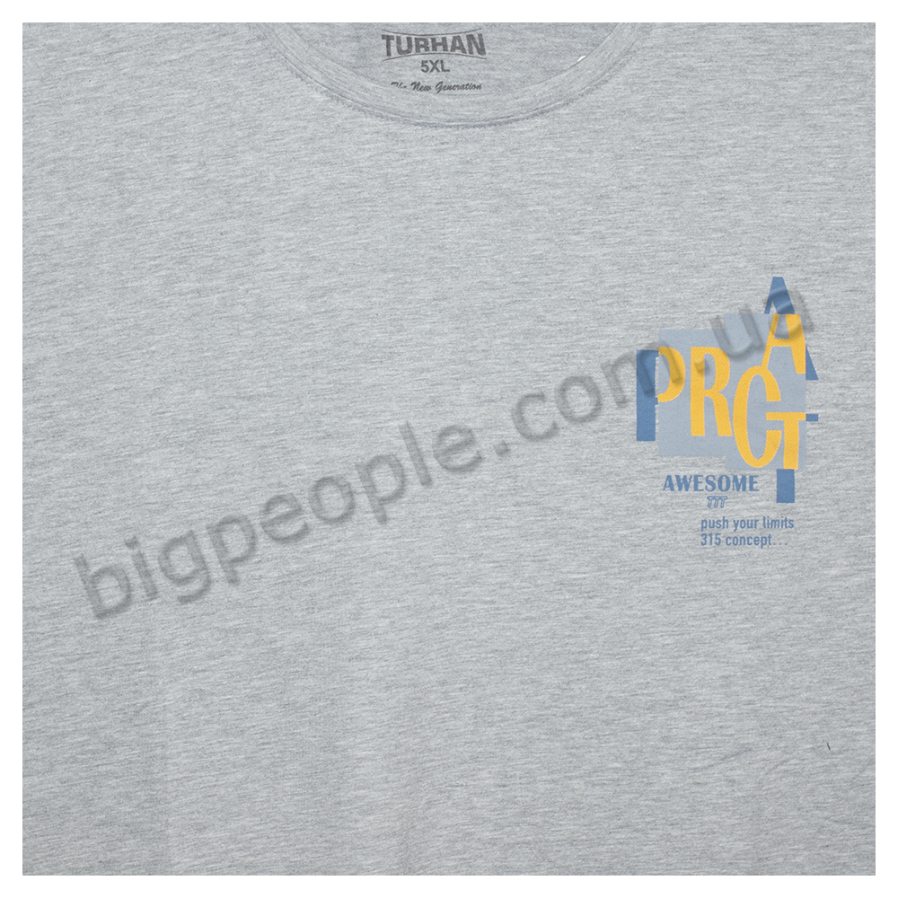 Футболка TURHAN для больших мужчин. Цвет серый. Впереди небольшой принт. Низ прямой. Производство Турция. Состав cotton (хлопок) 95%, эластан 5%.