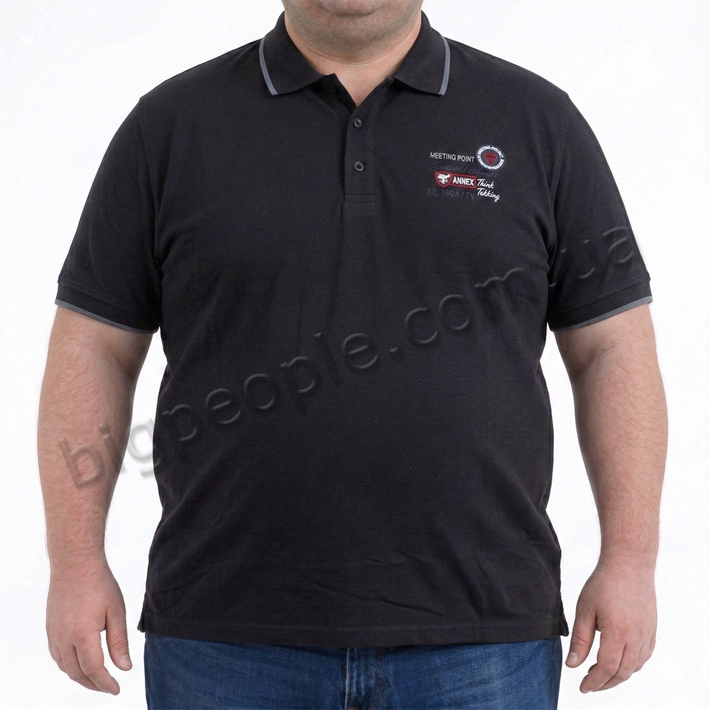 Мужское polo АННЕКС большого размера. Цвет чёрный. Низ изделия прямой. (fu01963552)