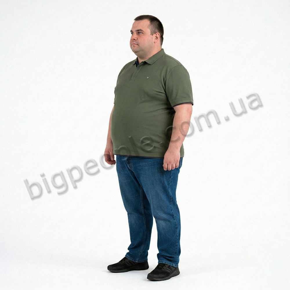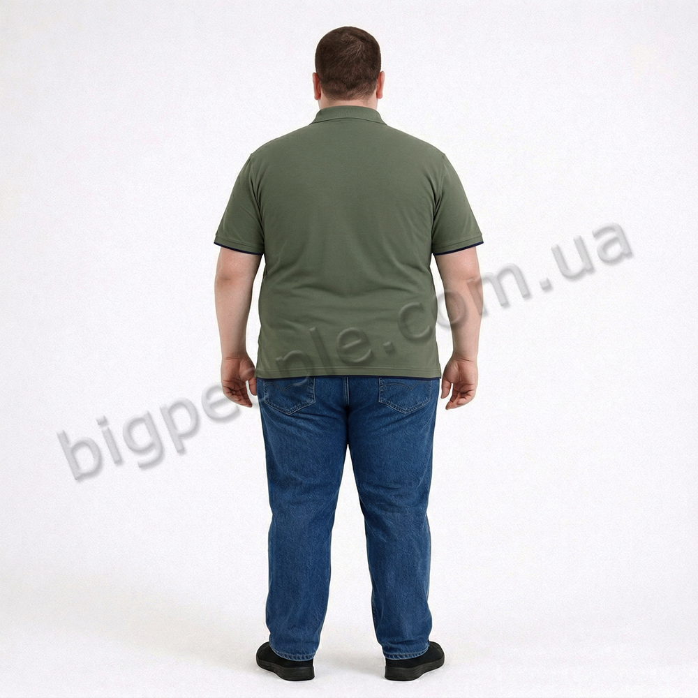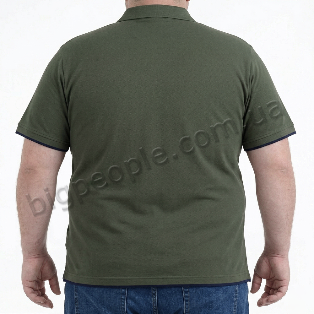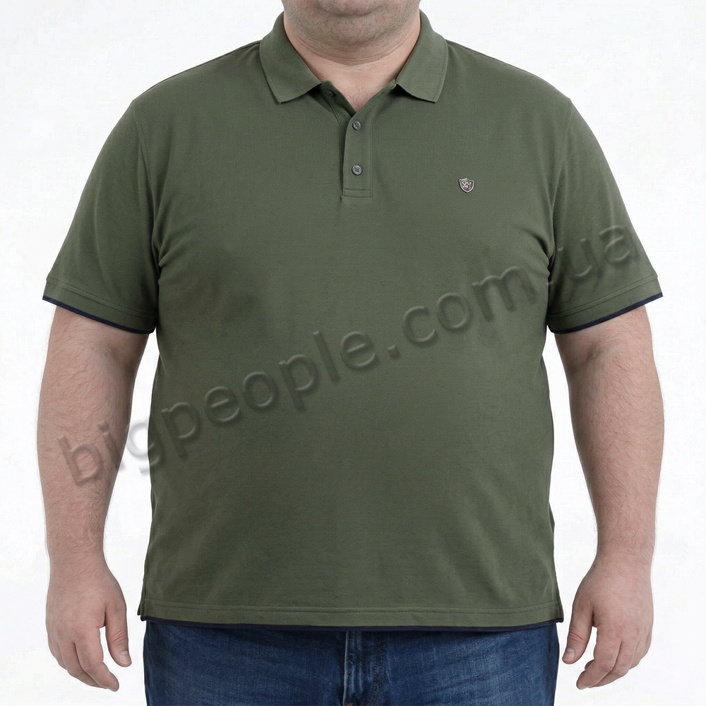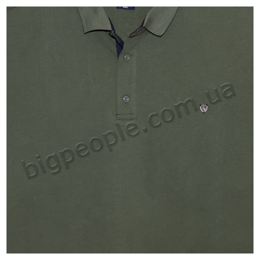 Хаки мужское поло большого размера TURHAN. Модель с воротником поло с тремя пуговицами. Карманов нет. Внизу прямая модель. На рукавах и внизу окантовка из ткани чёрного цвета. Производство Турции. Состав cotton (хлопок) 100%.