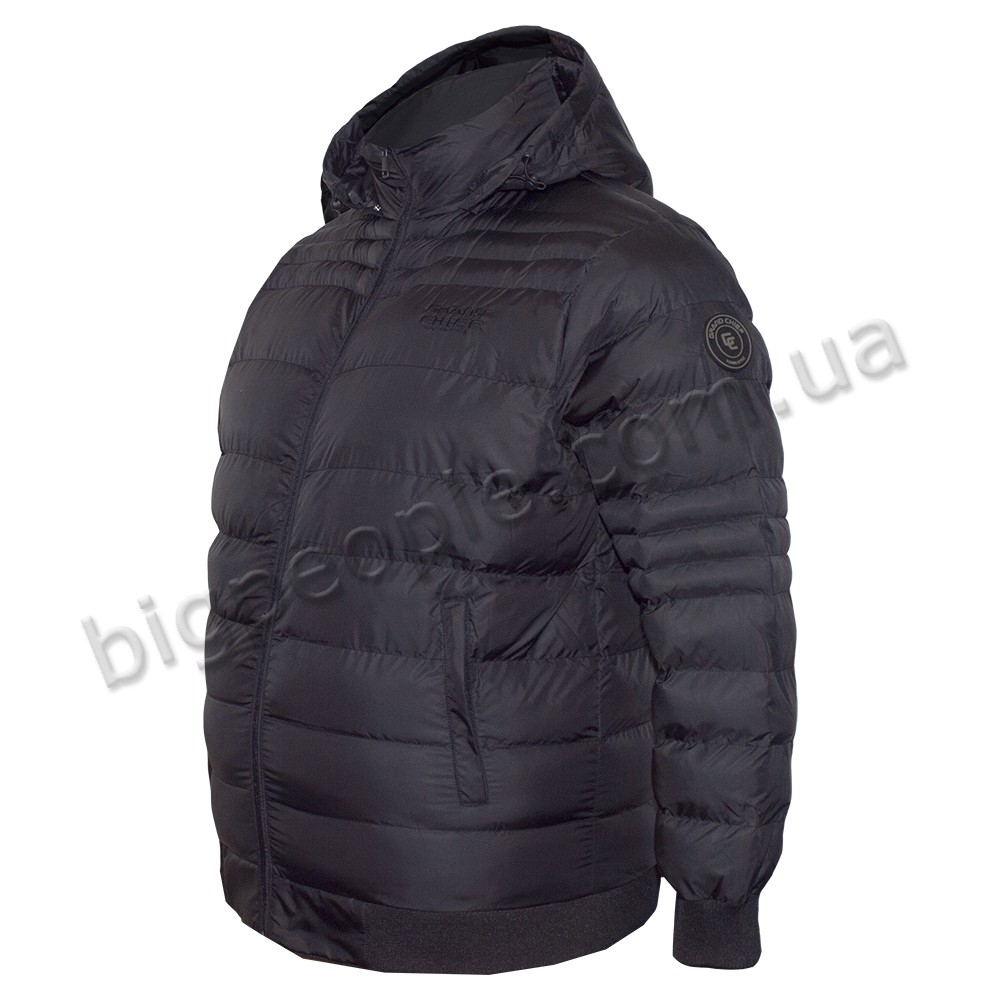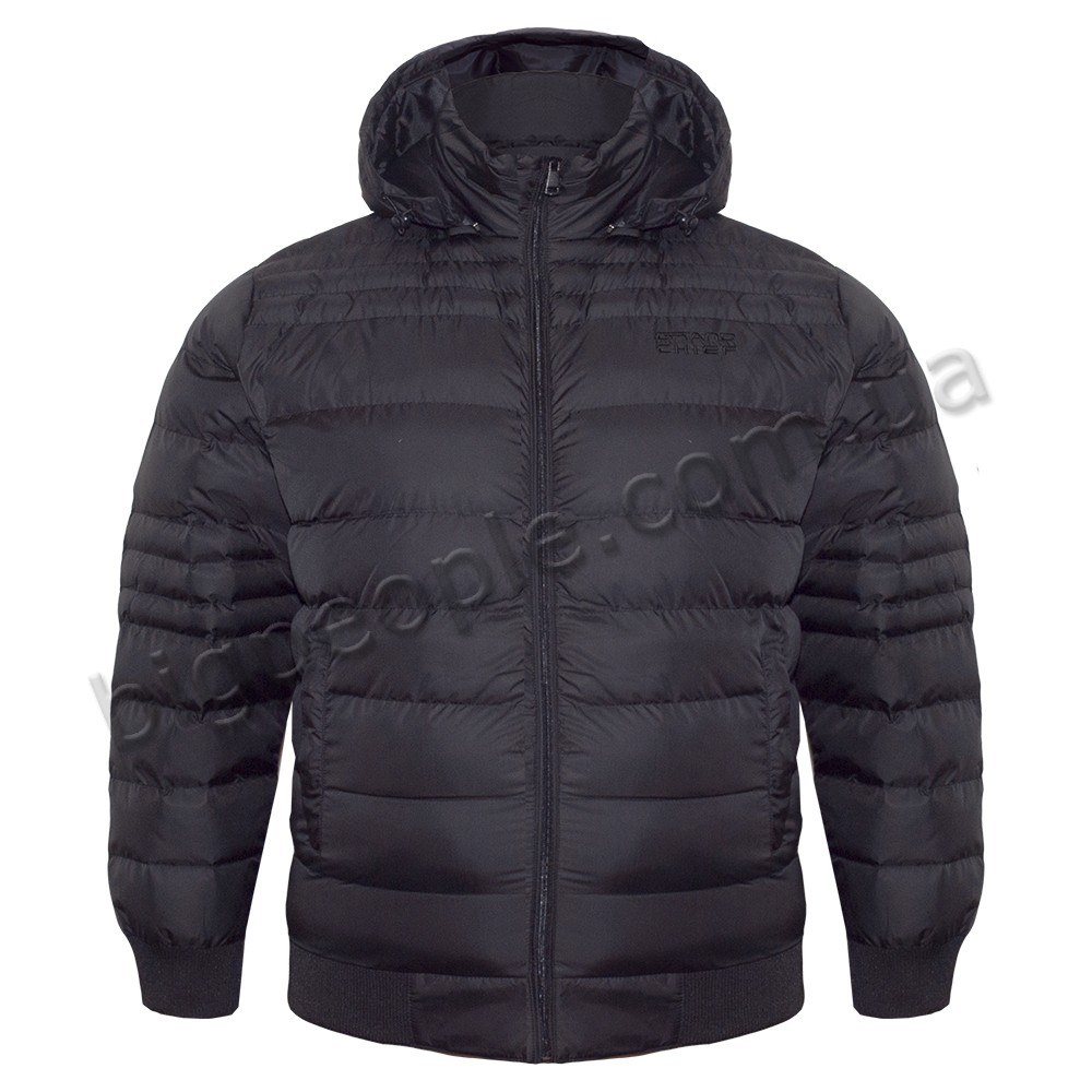 Черная демисезонная мужская куртка большого размера, бренд - GRAND CHIEF . Верх- болонья. В качестве подкладки используется тонкий синтепон. Низ на манжете. Капюшон снимается. Имеются впереди 2 кармана на молнии и 2 кармана внутри. Производство Турция. Состав: болонья, синтепон - полиэстер 100%.