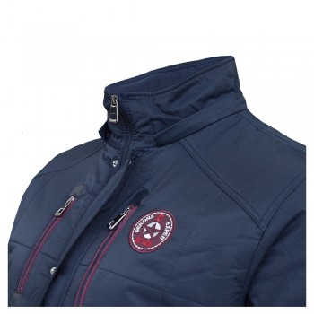 Тёмно-синяя утепленная мужская куртка DEKONS. Низ на манжете. Есть утеплитель синтепон. Застежка молния двойная - расстегивается как сверху, так и снизу. Сезон еврозима. Капюшон снимается. Имеются впе..