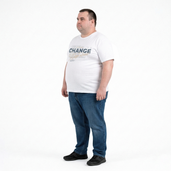 Мужская футболка ARMSTRONG, большого размера. Цвет белый. Низ изделия прямой, без манжеты. На модели присутствует оригинальный принт. Производство Турция. Состав cotton (хлопок) 100%. .size-tab..