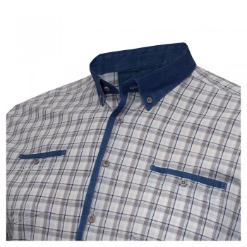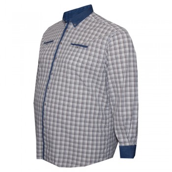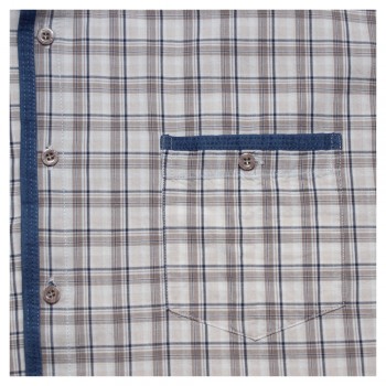 Рубашка большого размера BIRINDELLI с длинным рукавом, бежевая в клетку. Есть два кармана на груди. Джинсовый воротник, джинсовая отделка манжета рукавов и карманов. Состав хлопок 100%. Производство Т..