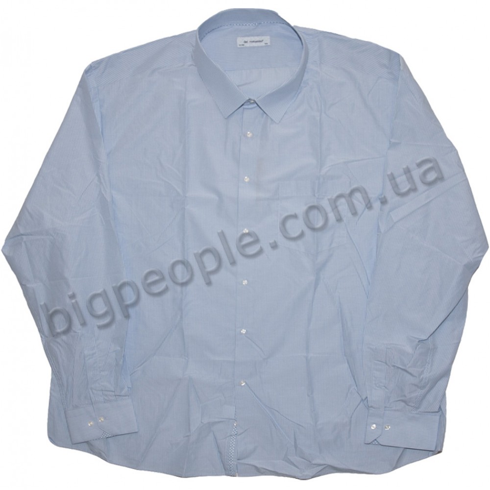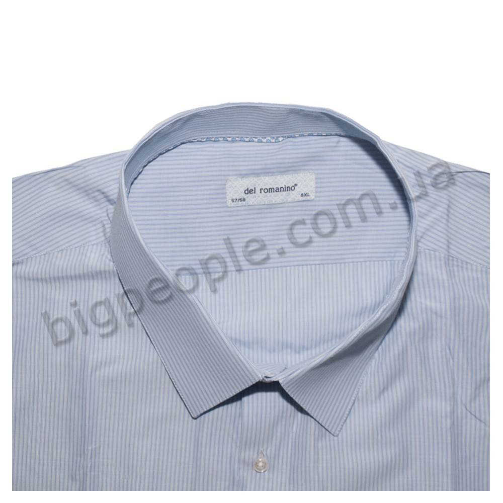 Рубашка из хлопковой ткани, с чередующейся вертикальной голубой, светло-голубой и белой полосками, для больших людей DEL ROMANINO. Оригнальная рубашка с длинным рукавом. Производство Турция. Состав: 100% cotton (хлопок).