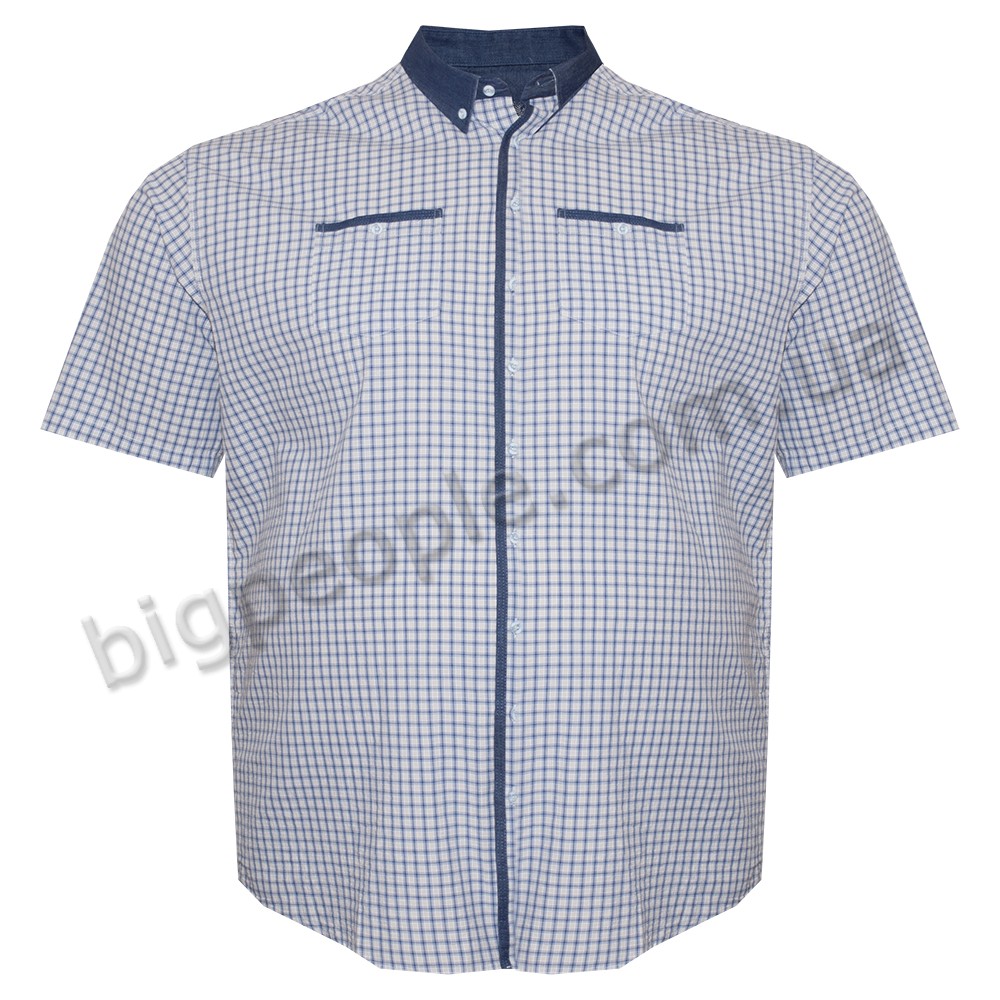 Хлопковая рубашка большого размера BIRINDELLI с коротким рукавом. Цвет синий. Два кармана на на груди. Воротник джинсовый. Состав хлопок 100%. Производство Турция.