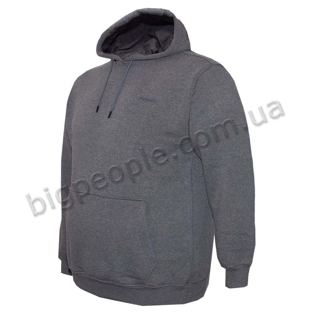 Худи мужское большого размера POLO PEPE. Внизу и на рукавах имеется резинка (манжеты). Присутствует капюшон. Состав cotton 100%. Трикотажная теплая толстовка, ткань по плотности - три нитки. Цвет серый.
