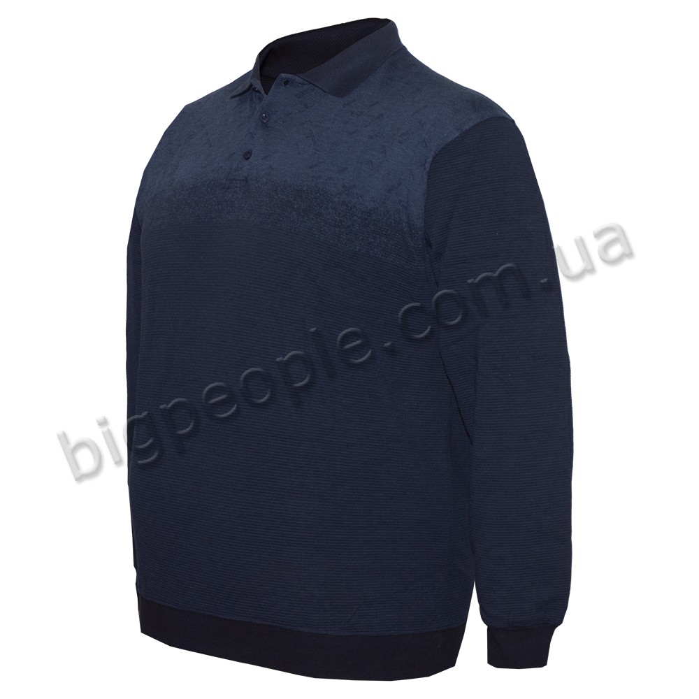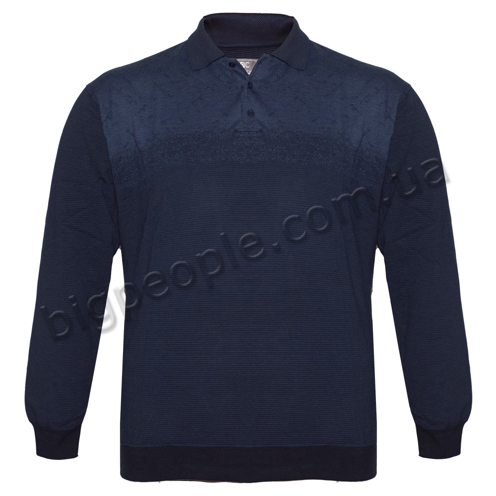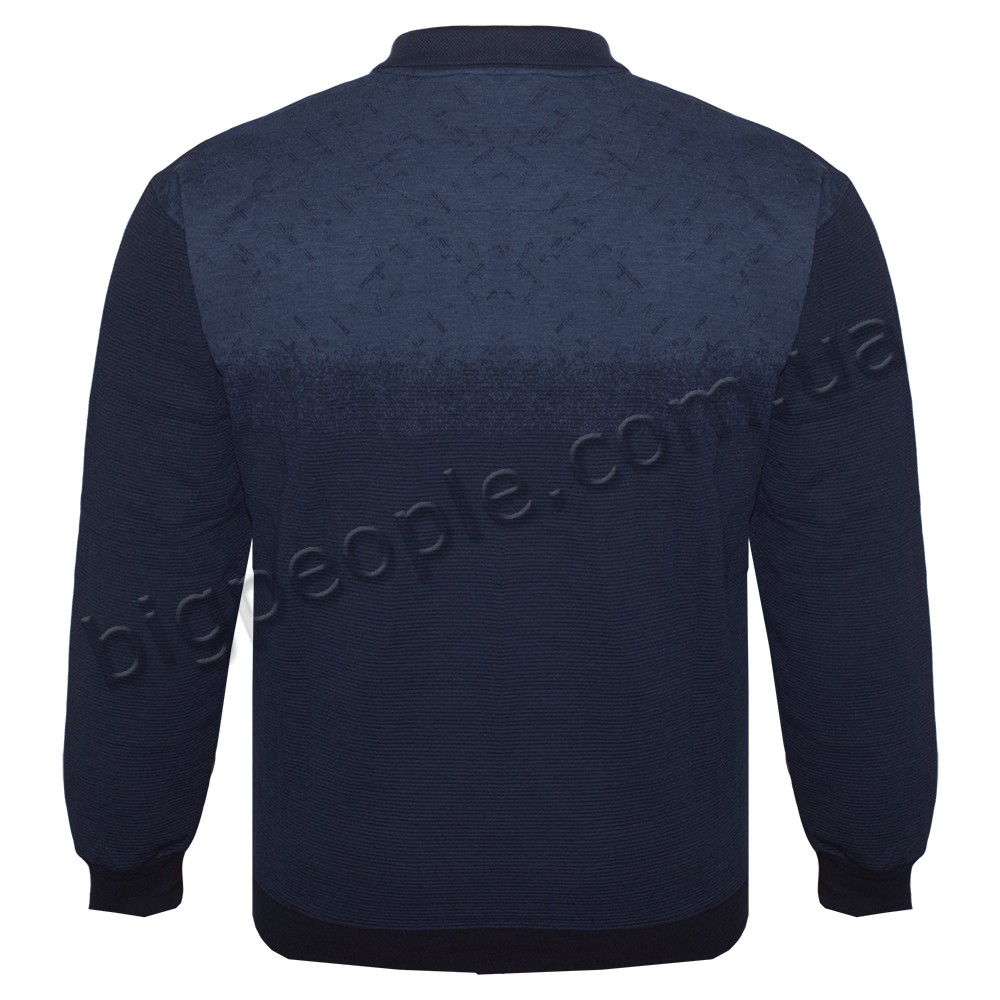 Мужская толстовка-polo средней плотности для больших мужчин GRAND CHIEF. Производство Турция. Состав: cotton (хлопок) 70%, вискоза 30%. Внизу модель на манжете, на рукавах манжеты. Цвет тёмно-синий.