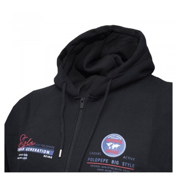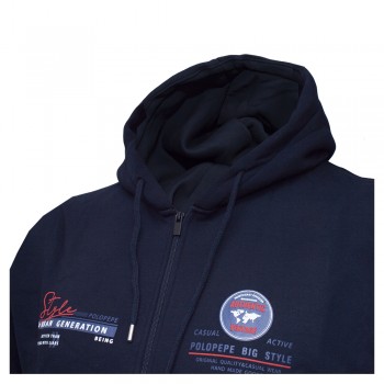 Мужская тёмно-синяя толстовка большого размера POLO PEPE (утепленная). Застегивается на молнию. Манжет внизу и на рукавах. На груди присутствует принт. Имеется капюшон. Капюшон не отстёгивается. Сос..