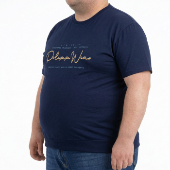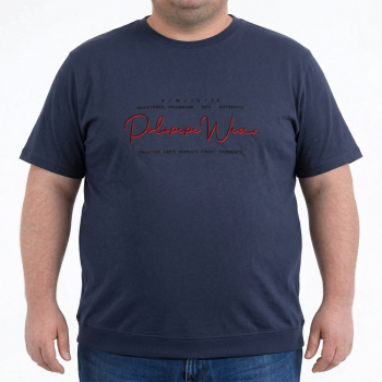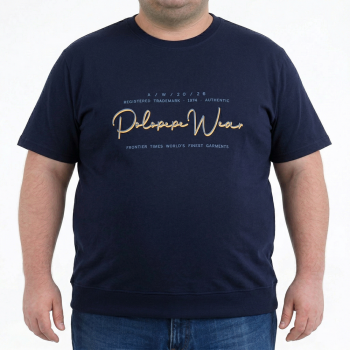 Футболка POLO PEPE для великих чоловіків. Колір темно-синій. Низ на манжеті. На виробі присутній оригінальний малюнок. Виробництво Туреччина. Склад cotton (бавовна) 95%, еластан 5%. .size-table-w..