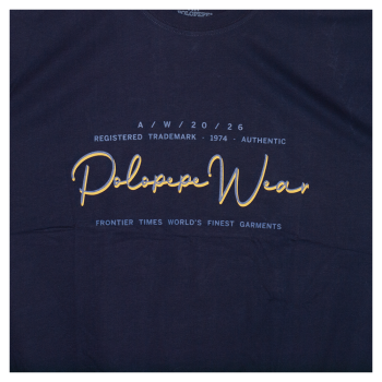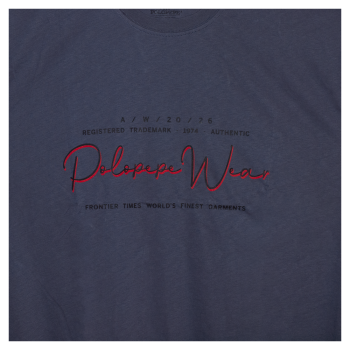 Футболка POLO PEPE для чоловіків. Колір синій. На виробі є напис. Виробництво Туреччина. Склад cotton (бавовна) 100%. .size-table-wrapper { font-family: Arial, Helvetica, sans-serif; margin-botto..