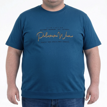 Футболка POLO PEPE для великих чоловіків. Колір синій. Низ на манжеті. На виробі присутній оригінальний малюнок. Виробництво Туреччина. Склад cotton (бавовна) 95%, еластан 5%. .size-table-wrapper..