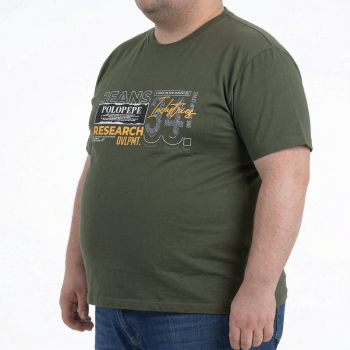 Футболка POLO PEPE для чоловіків. Колір хакі. На виробі є напис. Виробництво Туреччина. Склад cotton (бавовна) 100%. .size-table-wrapper { font-family: Arial, Helvetica, sans-serif; margin-bottom..