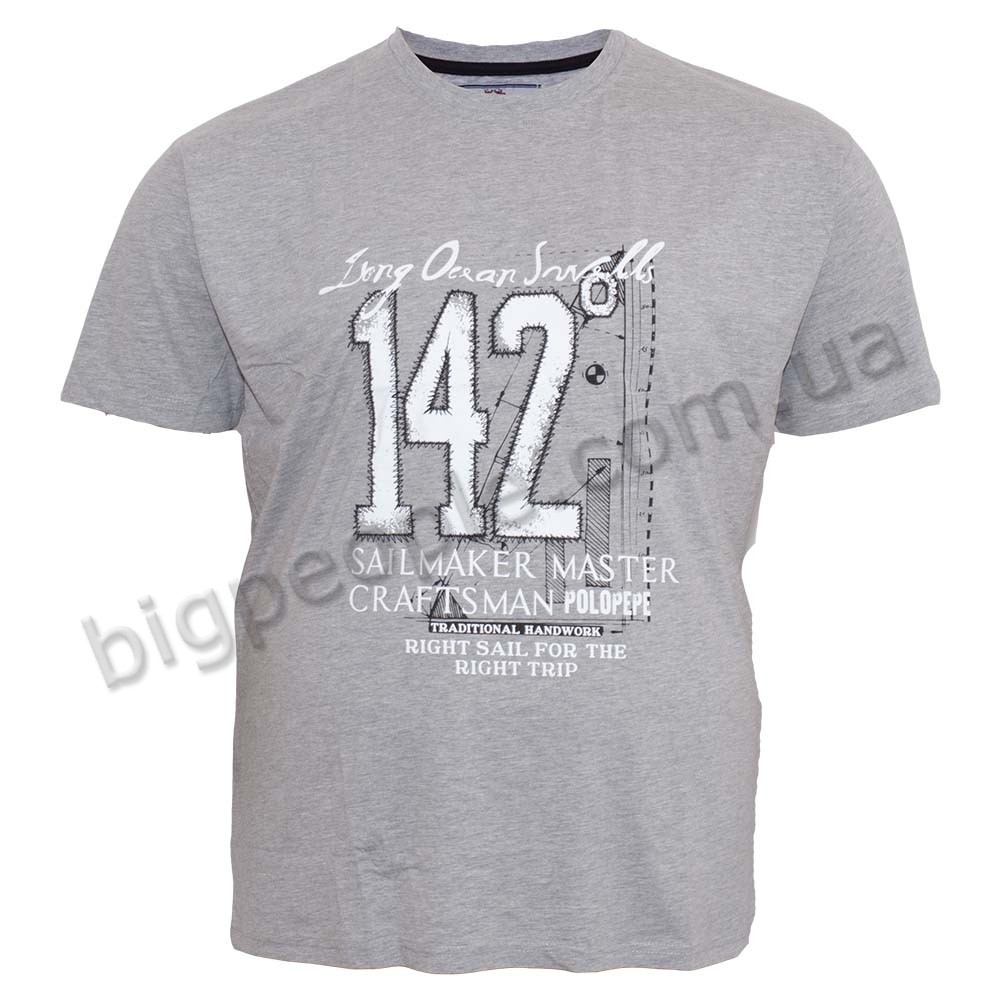 Футболка POLO PEPE для великих чоловіків. Колір сірий. На виробі присутній оригінальний малюнок. Виробництво Туреччина. Склад cotton (бавовна) 100%.