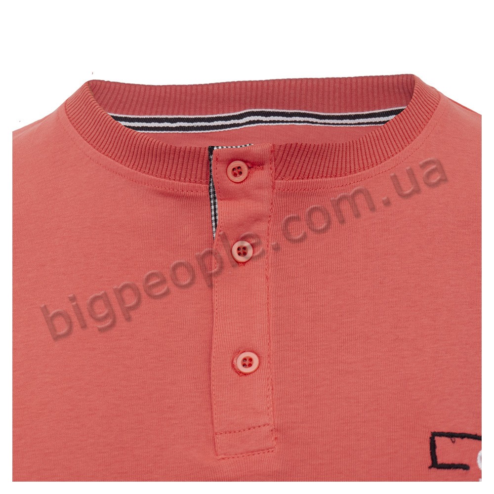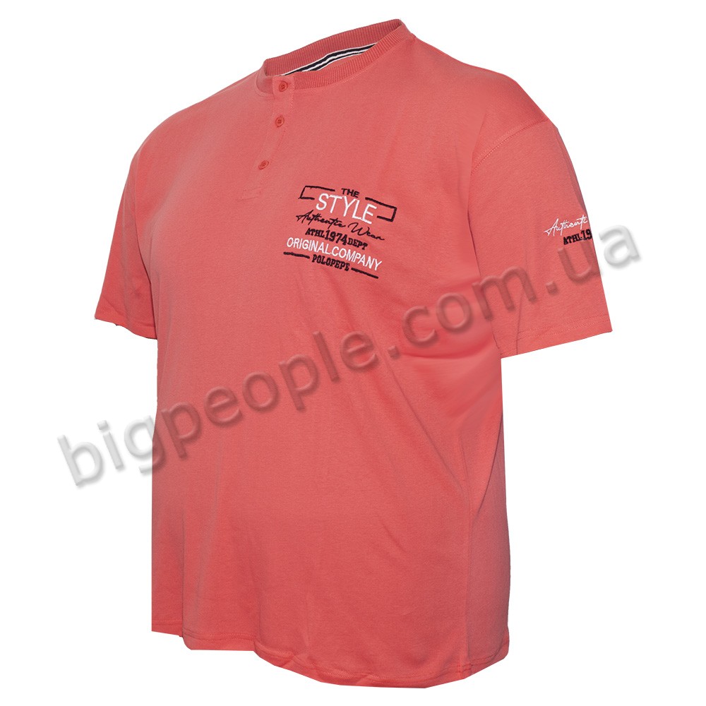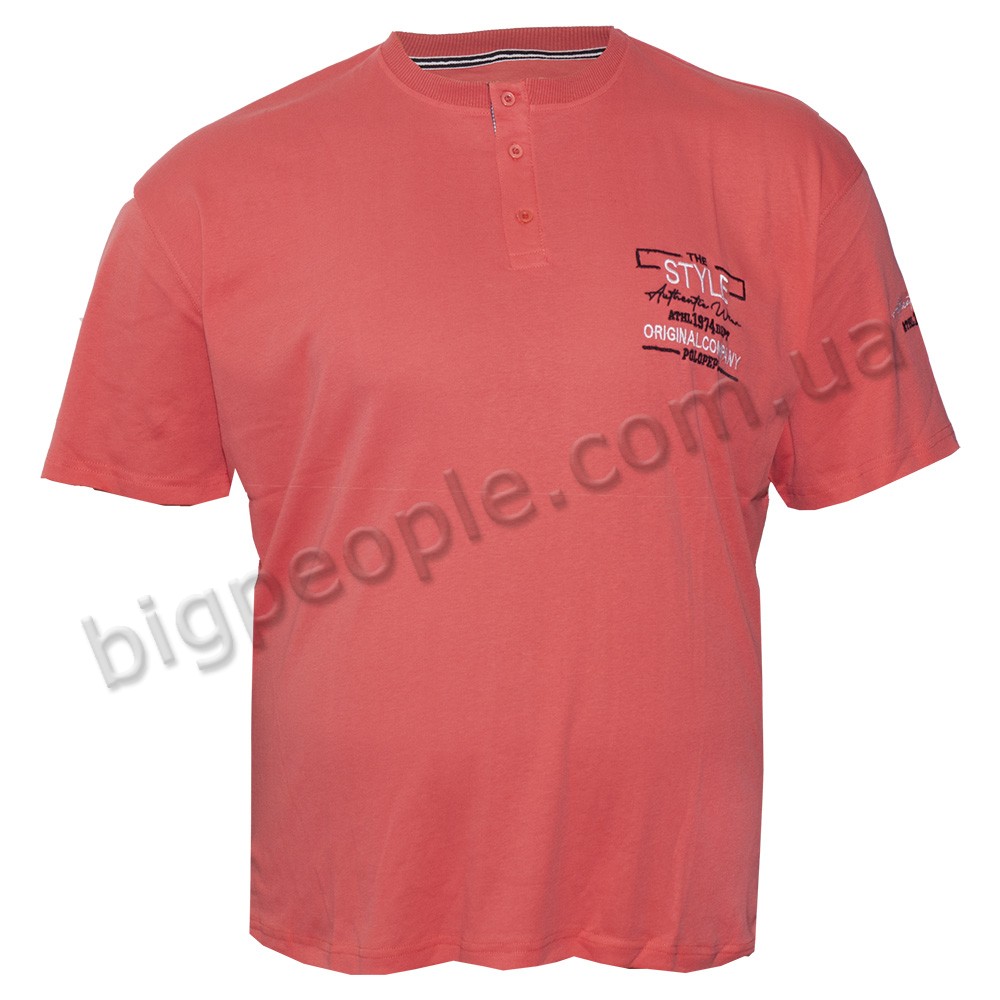 Коралова пряма (без манжета) внизу футболка поло великого розміру POLO PEPE, легка тонка літня тканина. На грудях вишивка. Комір виконаний з планкою з трьома гудзиками. Виробництво Туреччина. Склад cotton (бавовна) 100%.