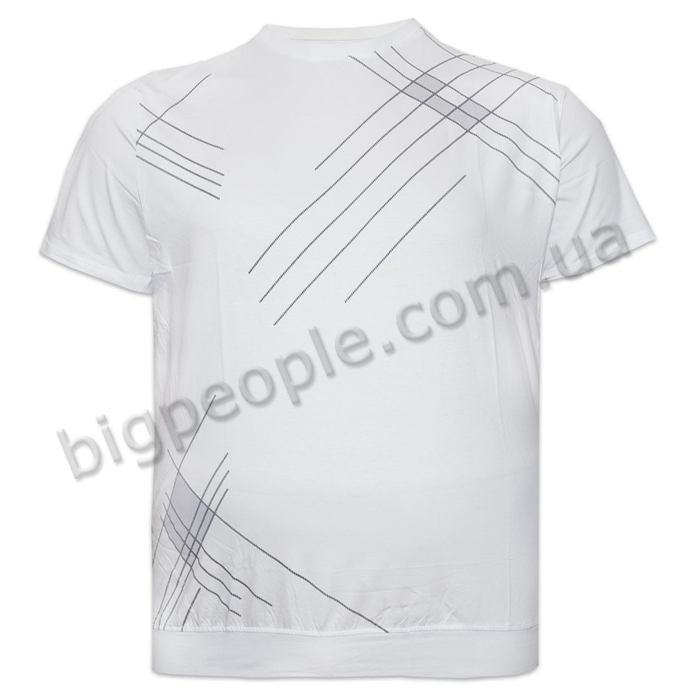 Футболка великого розміру білого кольору АННЕКС. Низ виробу на манжеті. Трикотажна літня тканина у складі якої 95% cotton (бавовна), 5% еластан.