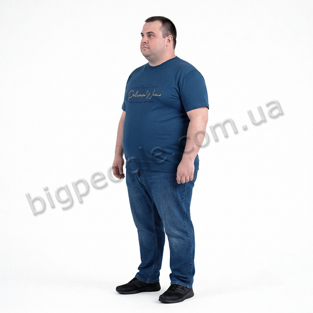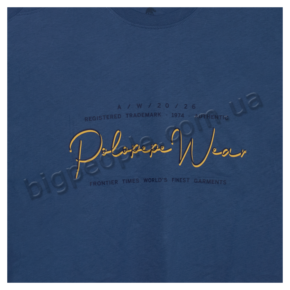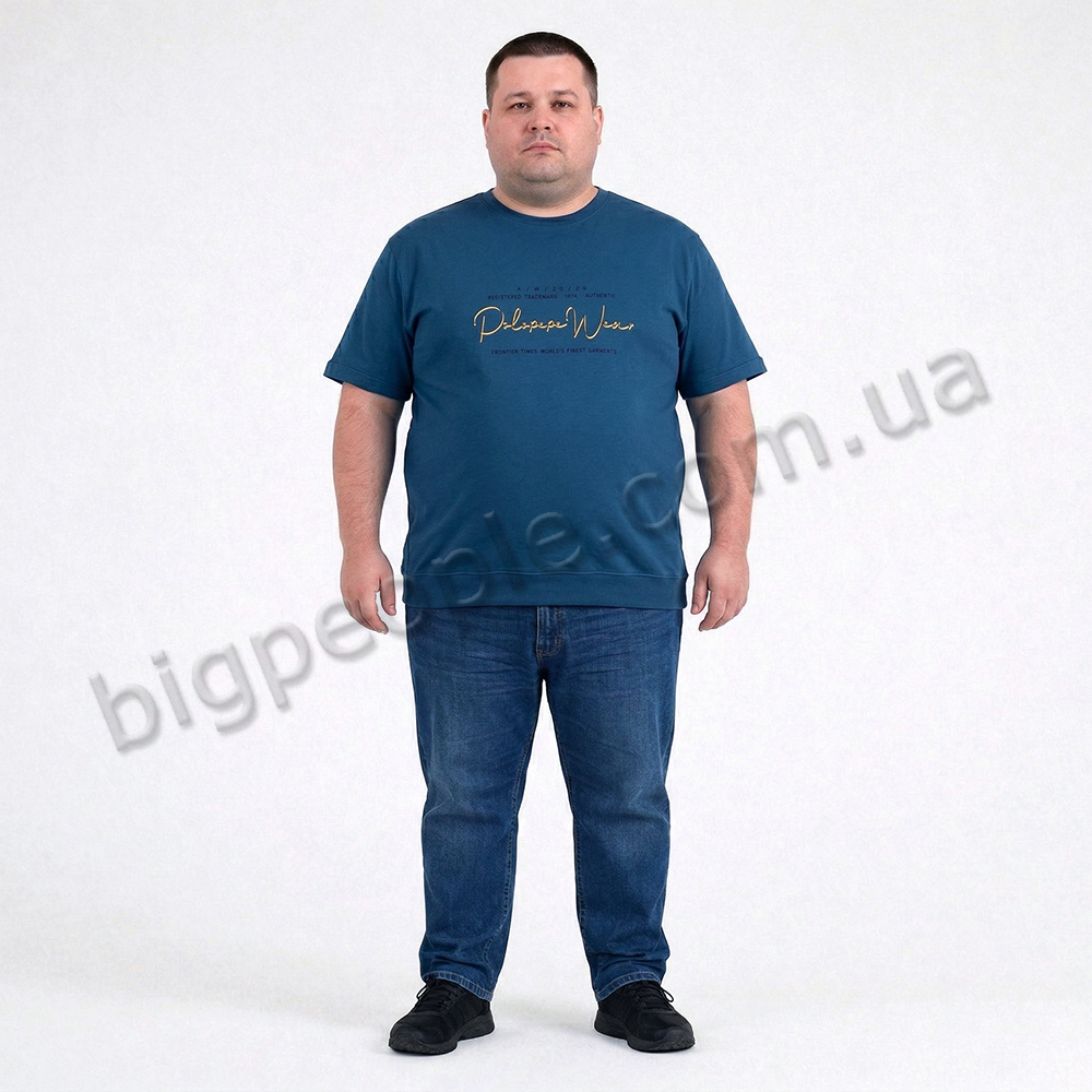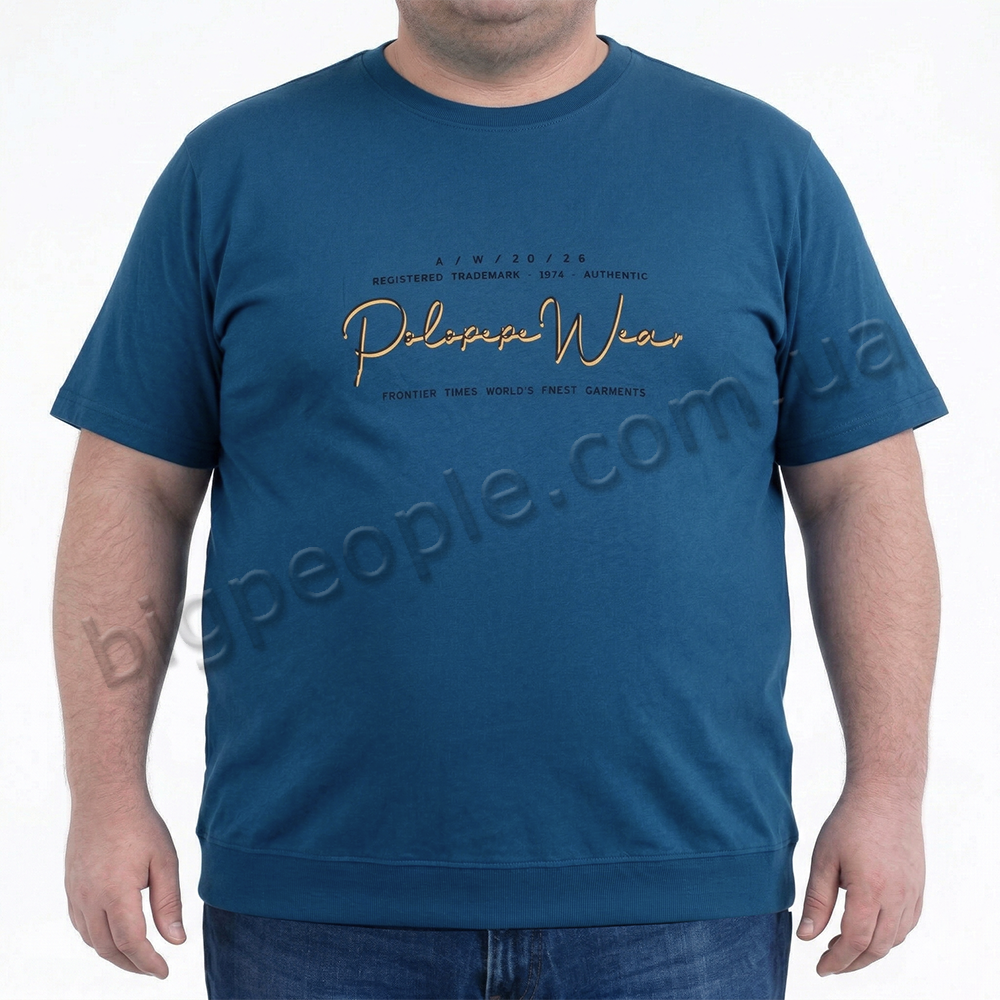 Футболка POLO PEPE для великих чоловіків. Колір синій. Низ на манжеті. На виробі присутній оригінальний малюнок. Виробництво Туреччина. Склад cotton (бавовна) 95%, еластан 5%.