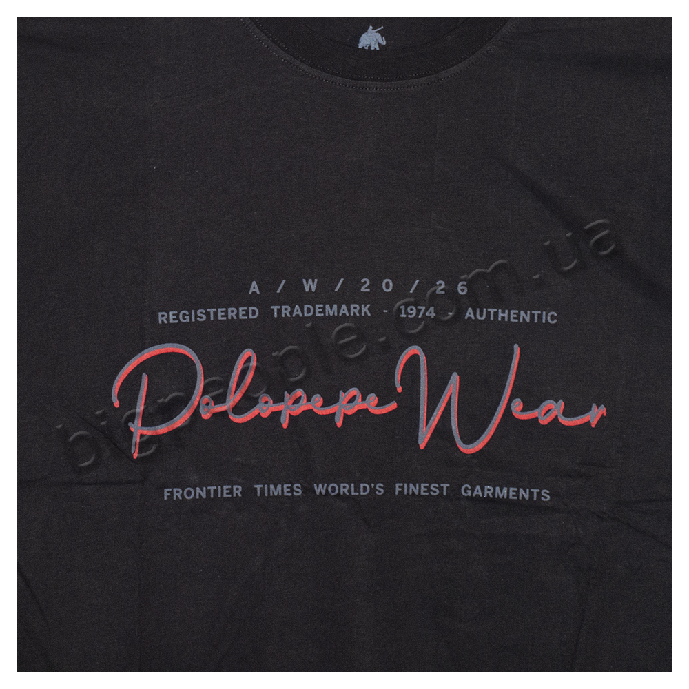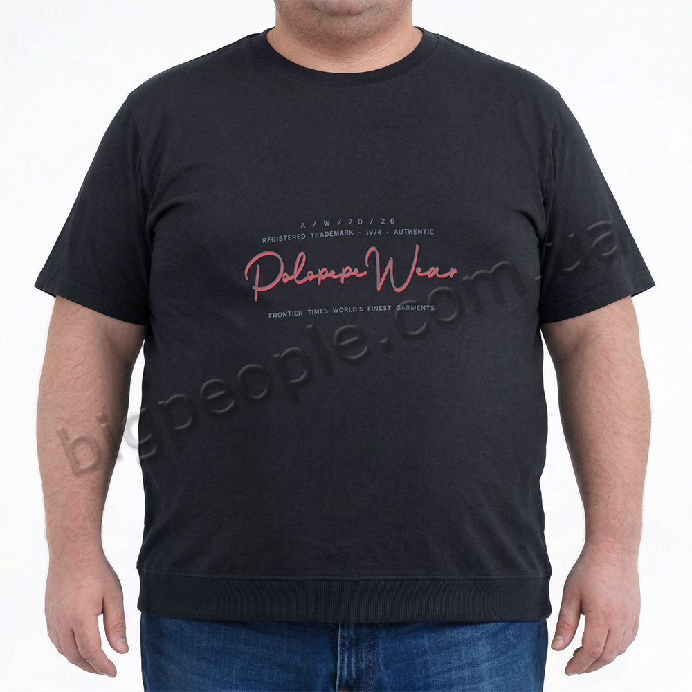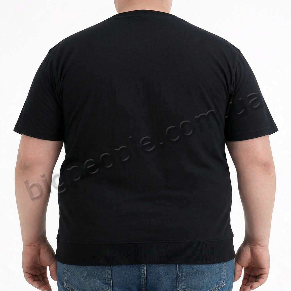 Футболка POLO PEPE для великих чоловіків. Колір чорний. Низ на манжеті. На виробі присутній оригінальний малюнок. Виробництво Туреччина. Склад cotton (бавовна) 95%, еластан 5%.