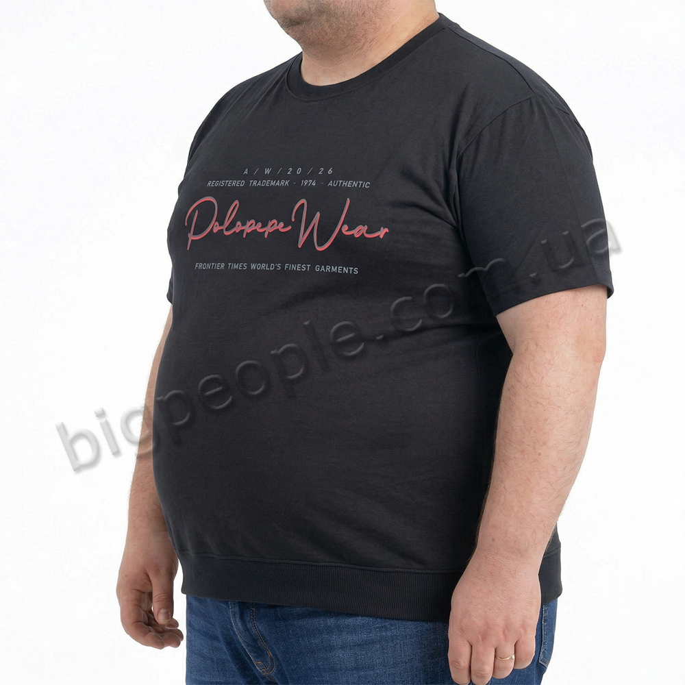 Футболка чоловіча POLO PEPE великого розміру. Колір чорний. Воріт напівкруглий. (fu02031883)