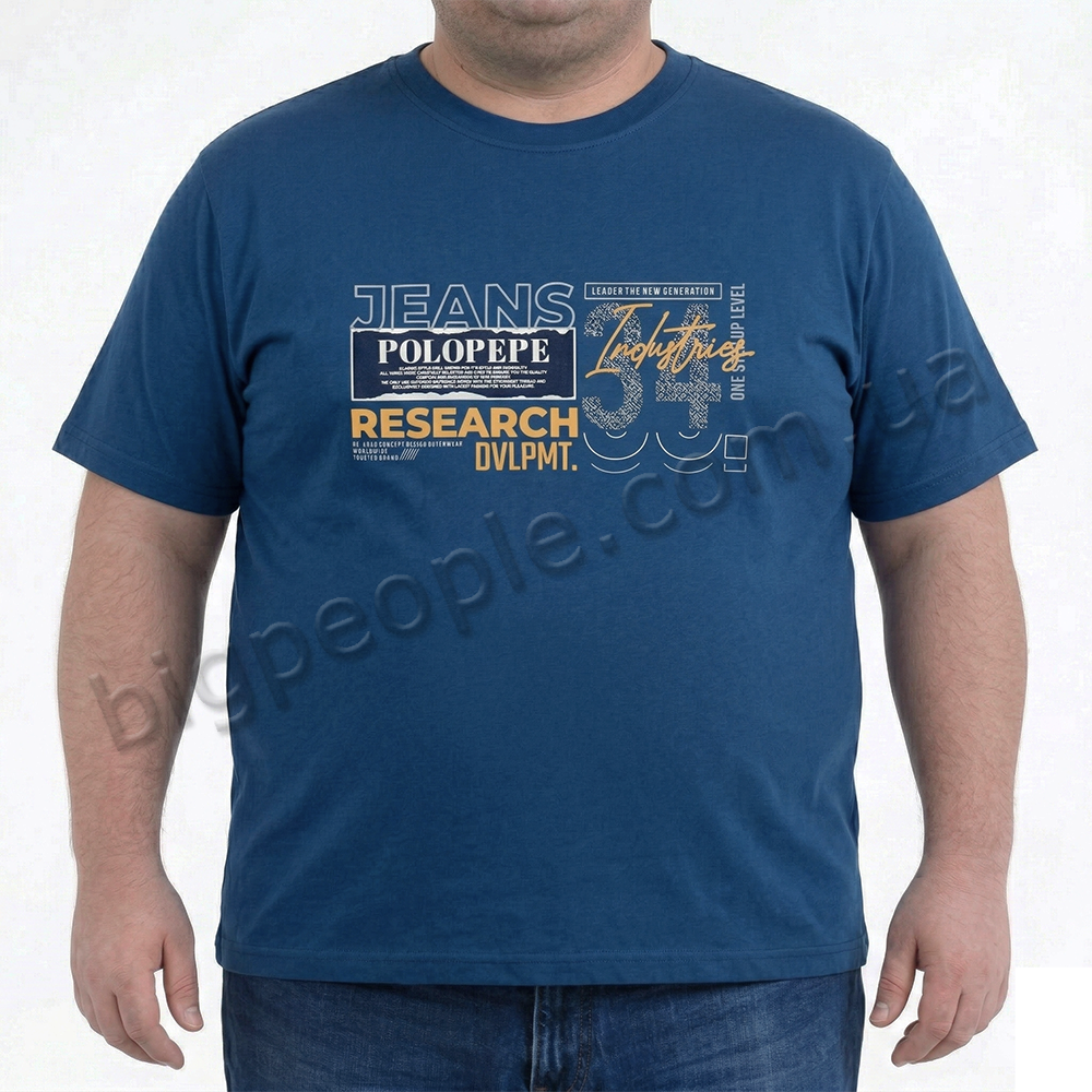 Футболка чоловіча POLO PEPE великого розміру. Колір синій. Воріт напівкруглий. (fu02034879)