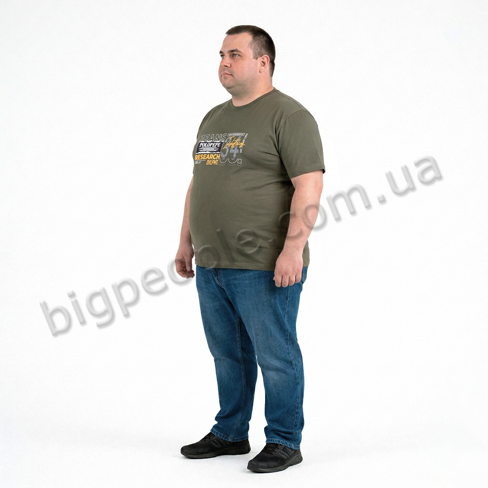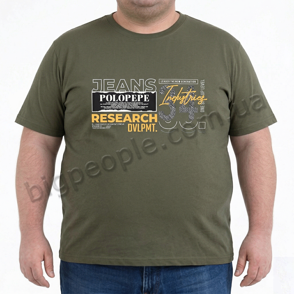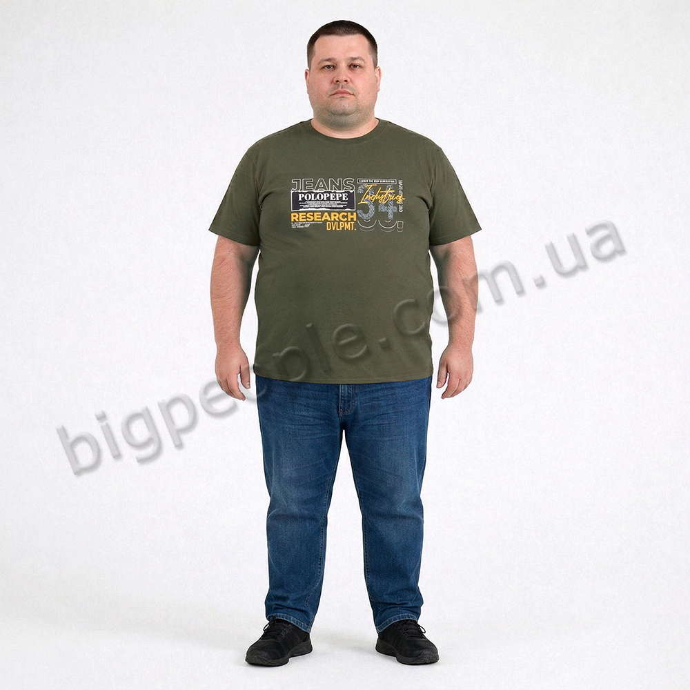Футболка чоловіча POLO PEPE великого розміру. Колір хакі. Воріт напівкруглий. (fu02035637)