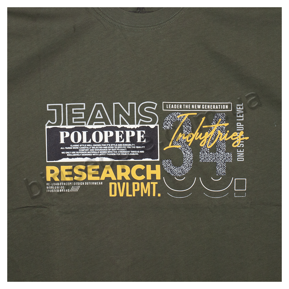 Футболка POLO PEPE для чоловіків. Колір хакі. На виробі є напис. Виробництво Туреччина. Склад cotton (бавовна) 100%.