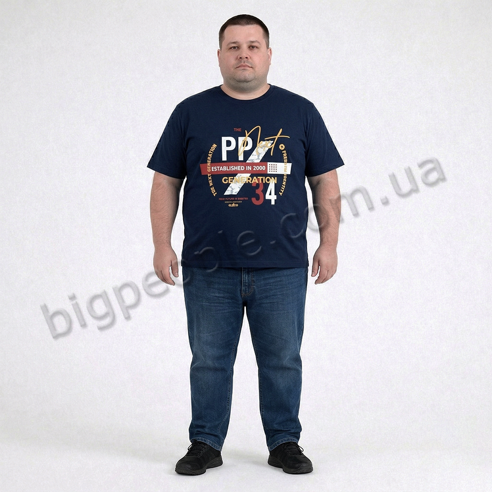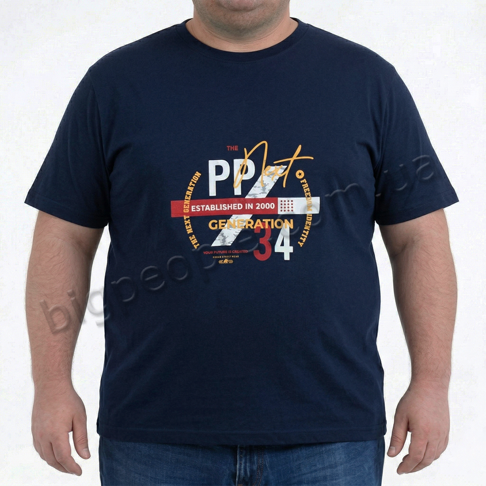 Футболка чоловіча POLO PEPE великого розміру. Колір темно-синій. Воріт напівкруглий. (fu02038446)