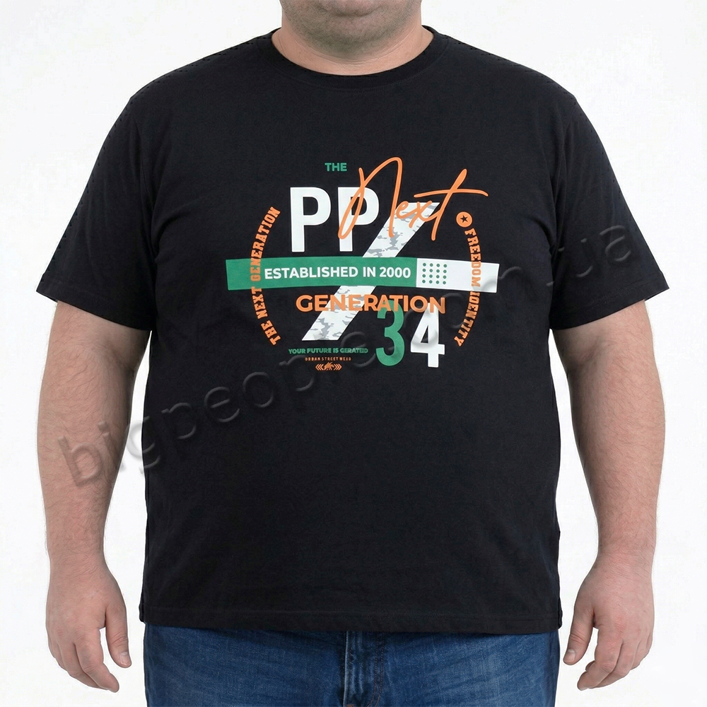 Футболка чоловіча POLO PEPE великого розміру. Колір чорний. Воріт напівкруглий. (fu02039041)