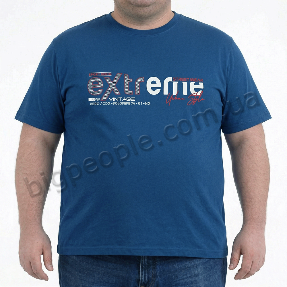 Футболка чоловіча POLO PEPE великого розміру. Колір синій. Воріт напівкруглий. (fu02046744)