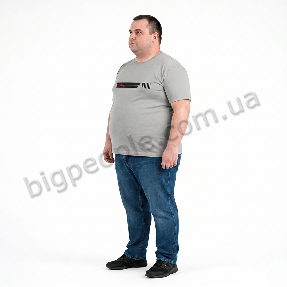 Футболка POLO PEPE для великих чоловіків. Колір сірий. На виробі присутній оригінальний малюнок. Виробництво Туреччина. Склад cotton (бавовна) 100%.
