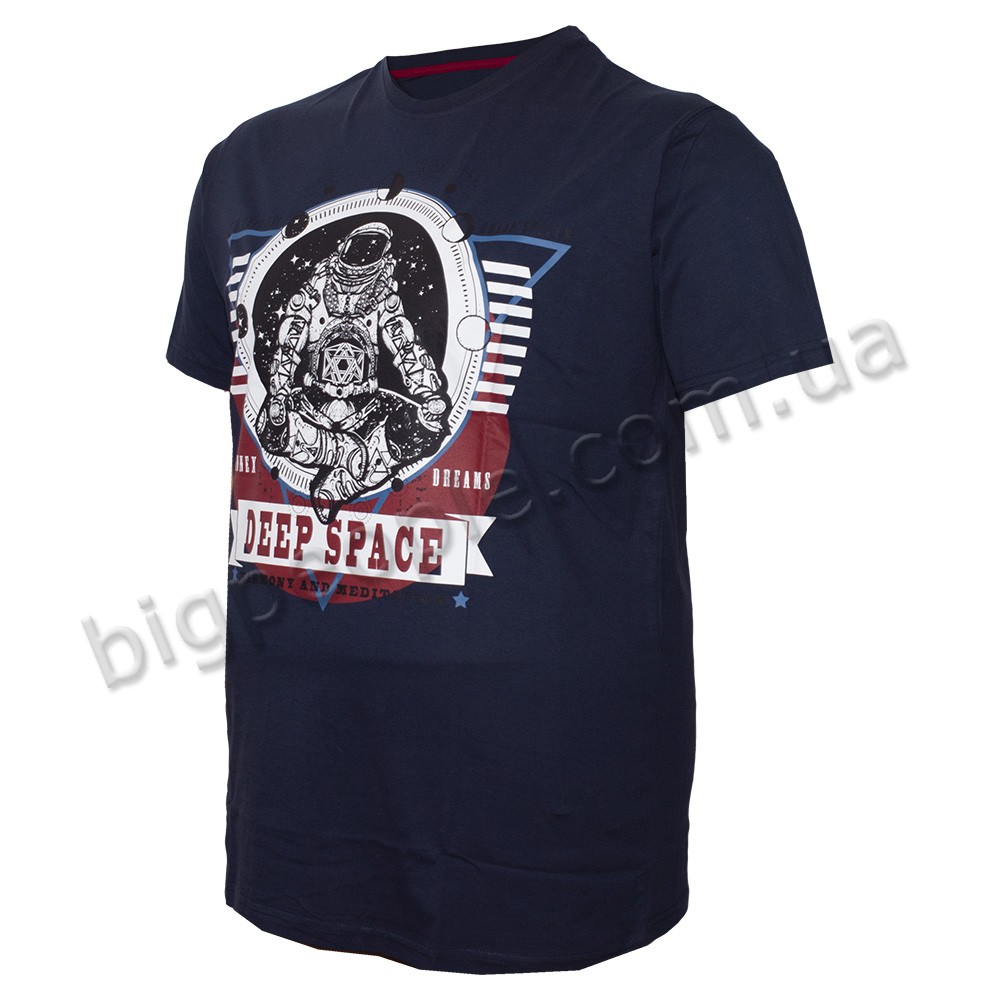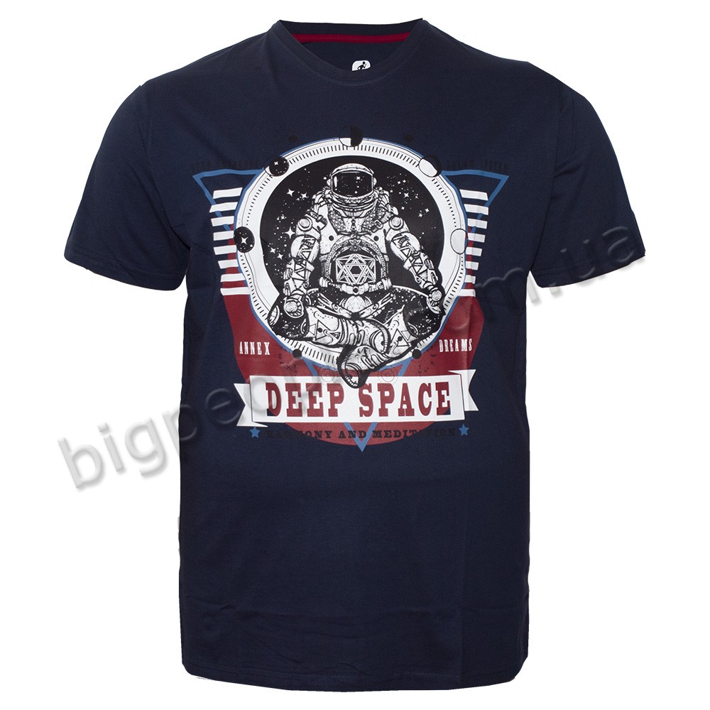 Футболка ANNEX для великих чоловіків. Колір темно-синій. Низ футболки прямий, без манжети. На футболці присутній оригінальний принт. Виробництво Туреччина. Склад cotton (бавовна) 100%.