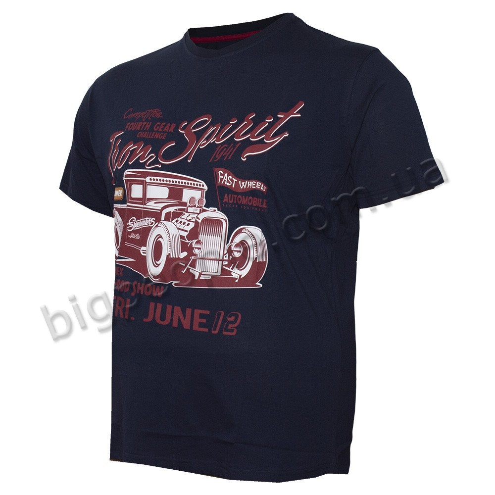 Футболка ANNEX для великих чоловіків. Колір темно-синій. Низ футболки прямий. На виробі присутній оригінальний принт. Виробництво Туреччина. Склад cotton (бавовна) 100%.