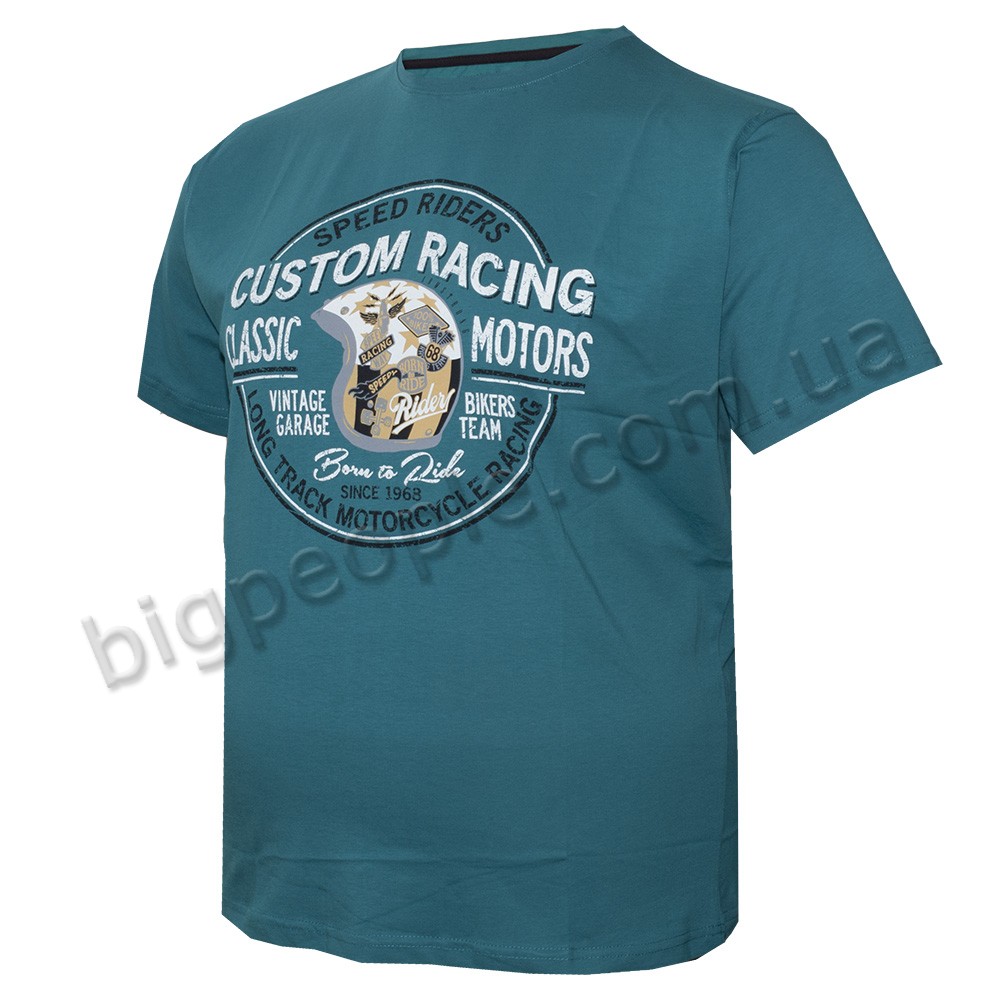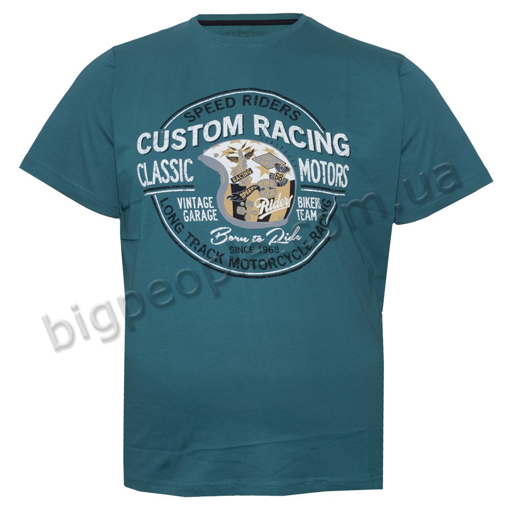 Футболка ARMSTRONG для великих чоловіків. Колір зелений. Низ футболки прямий, без манжети. На футболці присутній оригінальний принт. Виробництво Туреччина. Склад cotton (бавовна) 100%.