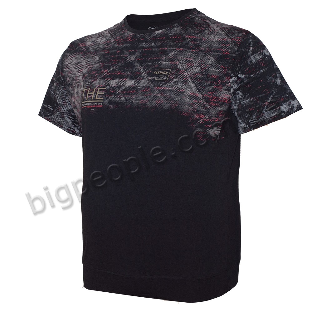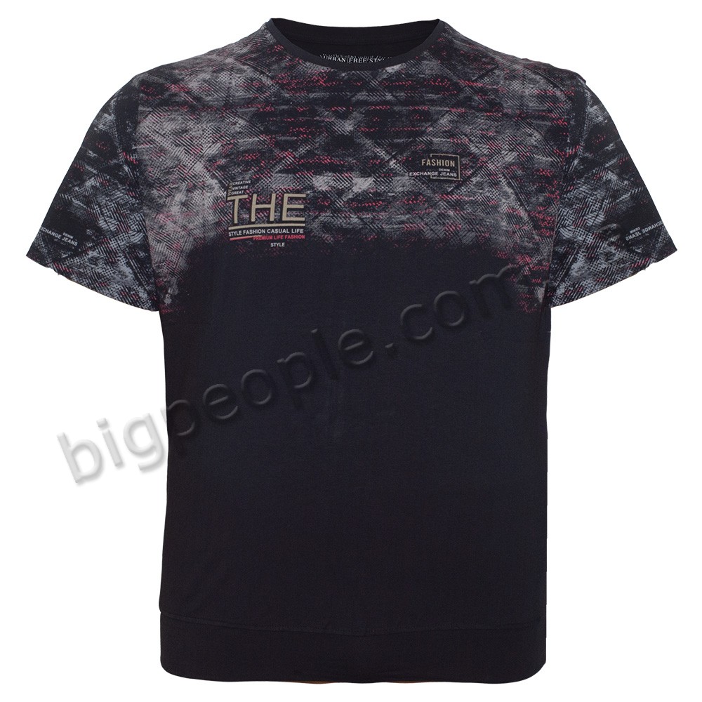 Футболка ARMSTRONG для великих чоловіків. Колір чорний. Низ футболки прямий, без манжети. На футболці присутній оригінальний принт. Виробництво Туреччина. Склад cotton (бавовна) 95%, еластан 5%.