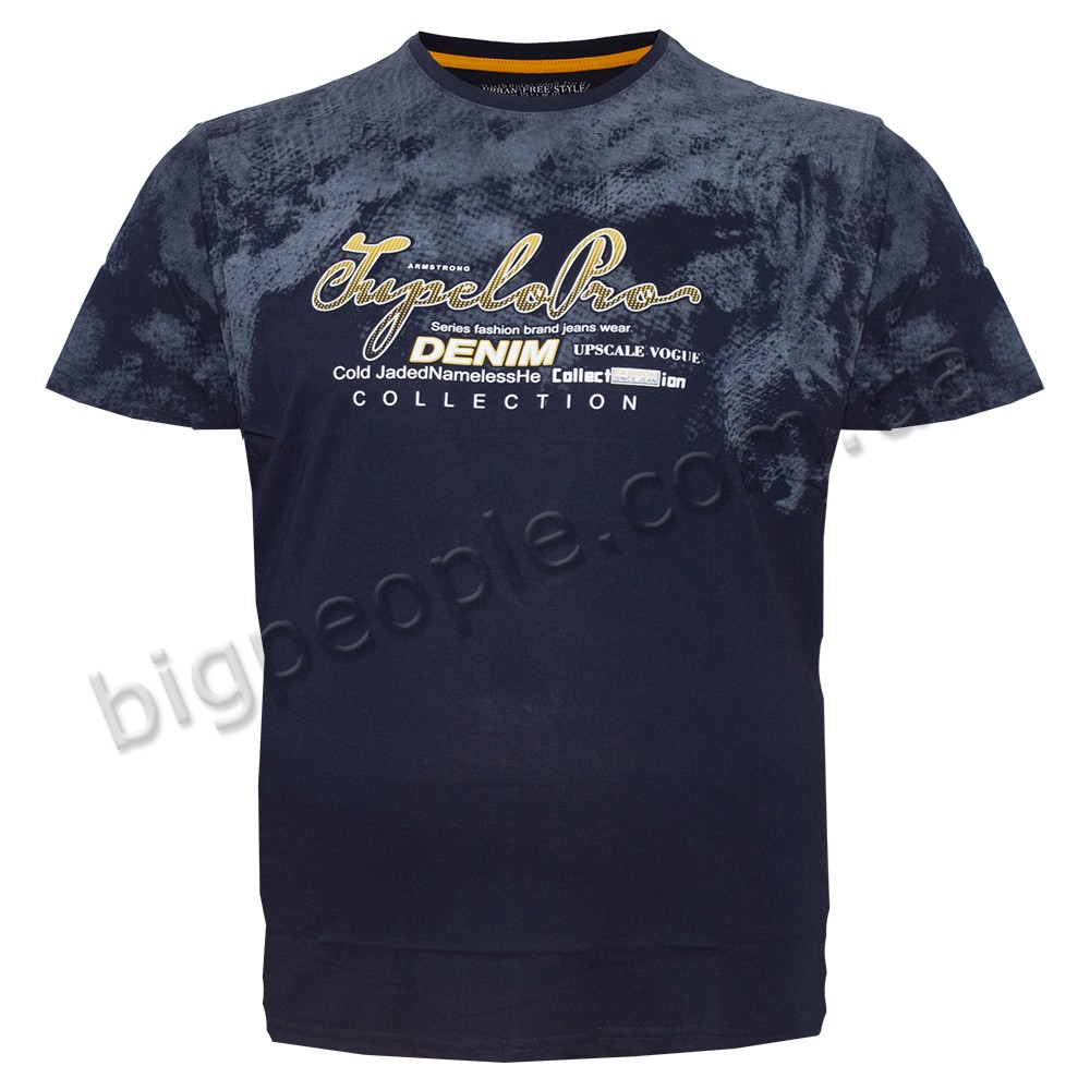 Чоловіча футболка ARMSTRONG, великого розміру. Колір темно-синій. Низ виробу прямий, без манжети. На моделі є оригінальний принт. Виробництво Туреччина. Склад cotton (бавовна) 100%.
