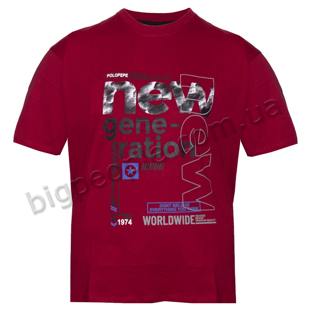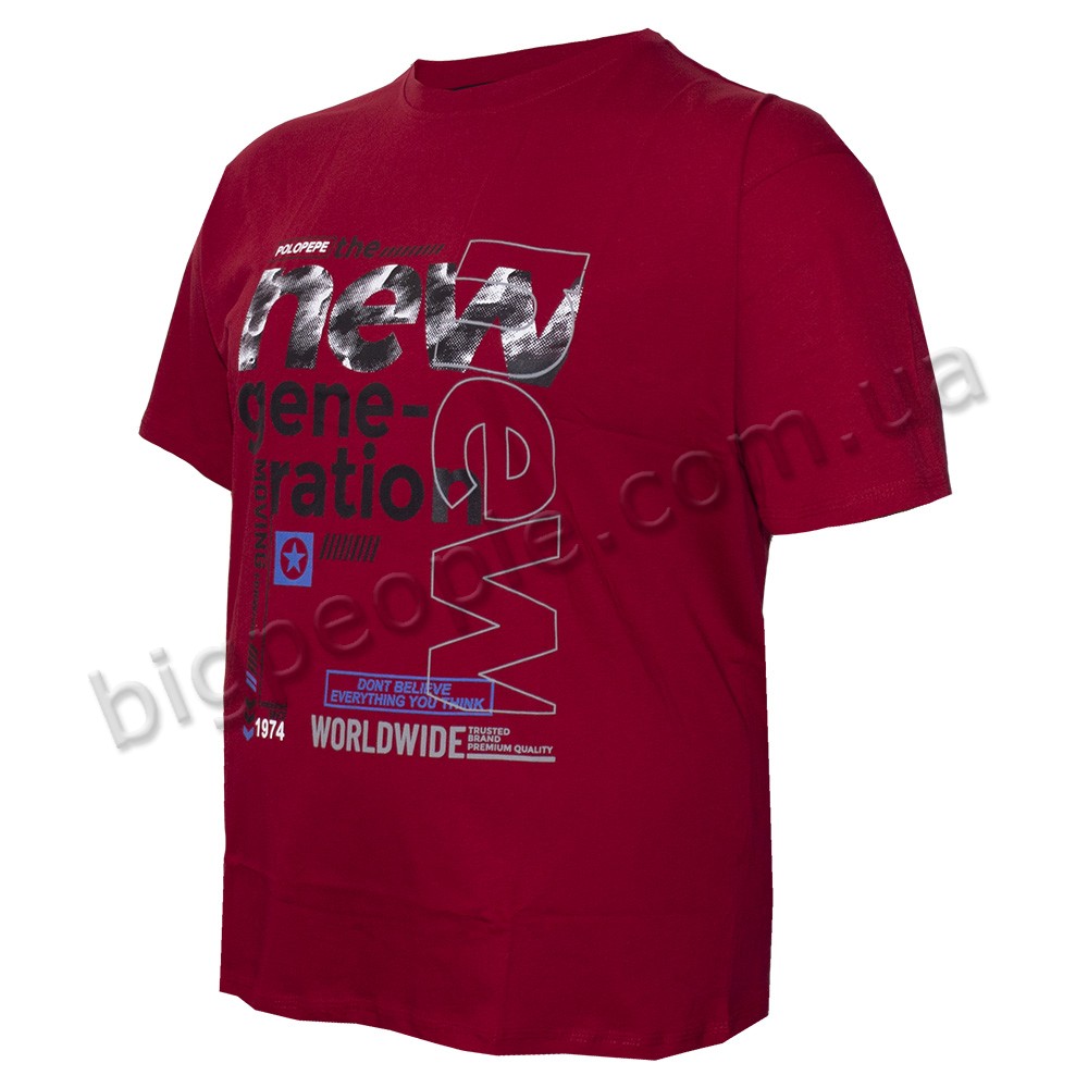Футболка POLO PEPE для великих чоловіків. Колір бордо. На виробі присутній оригінальний малюнок. Виробництво Туреччина. Склад cotton (бавовна) 100%.