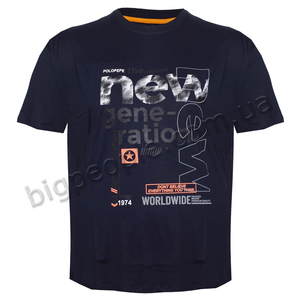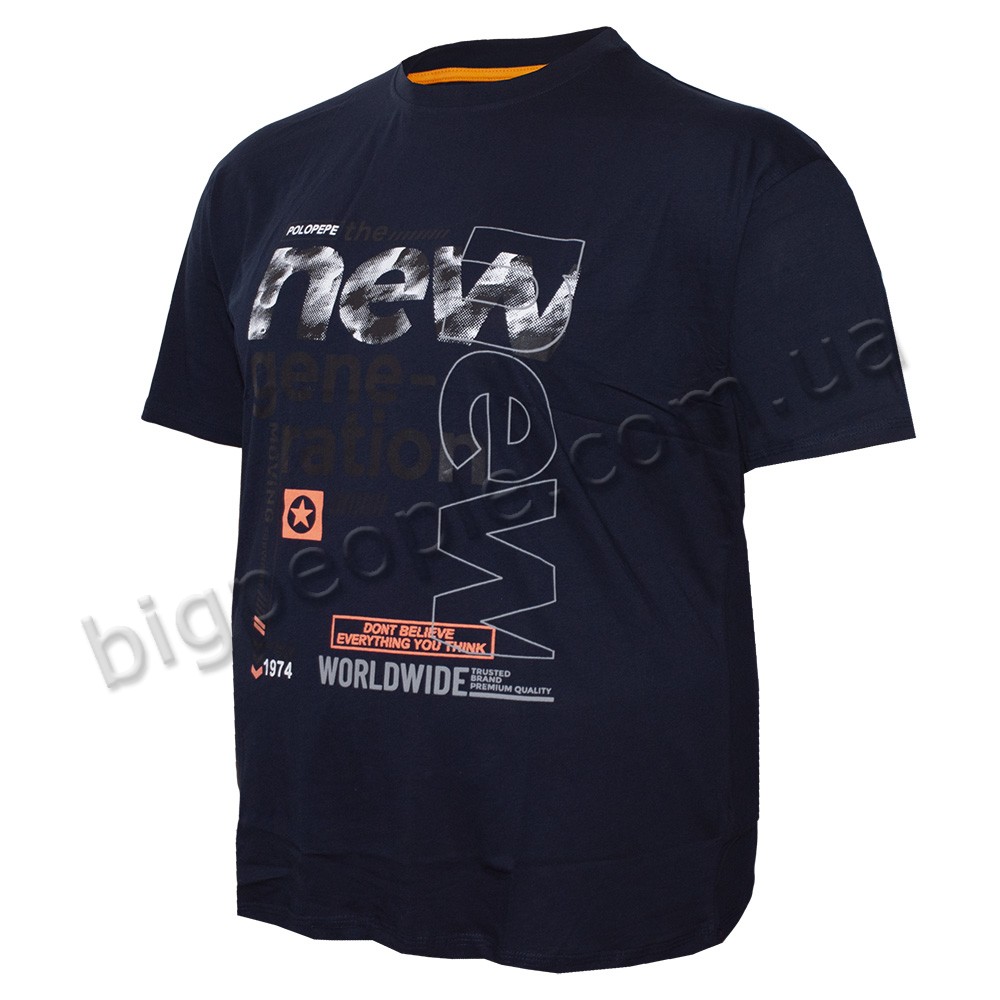 Футболка POLO PEPE для великих чоловіків. Колір темно-синій. На виробі присутній оригінальний малюнок. Виробництво Туреччина. Склад cotton (бавовна) 100%.
