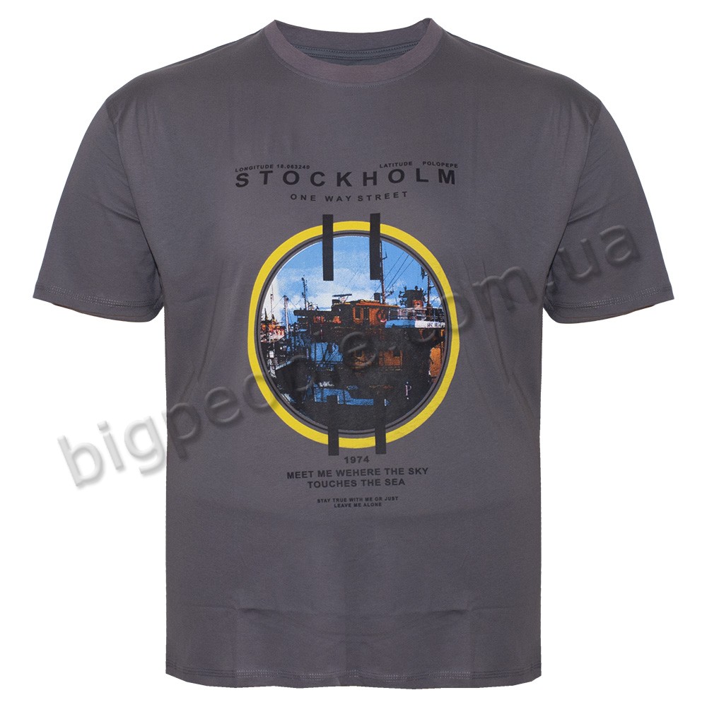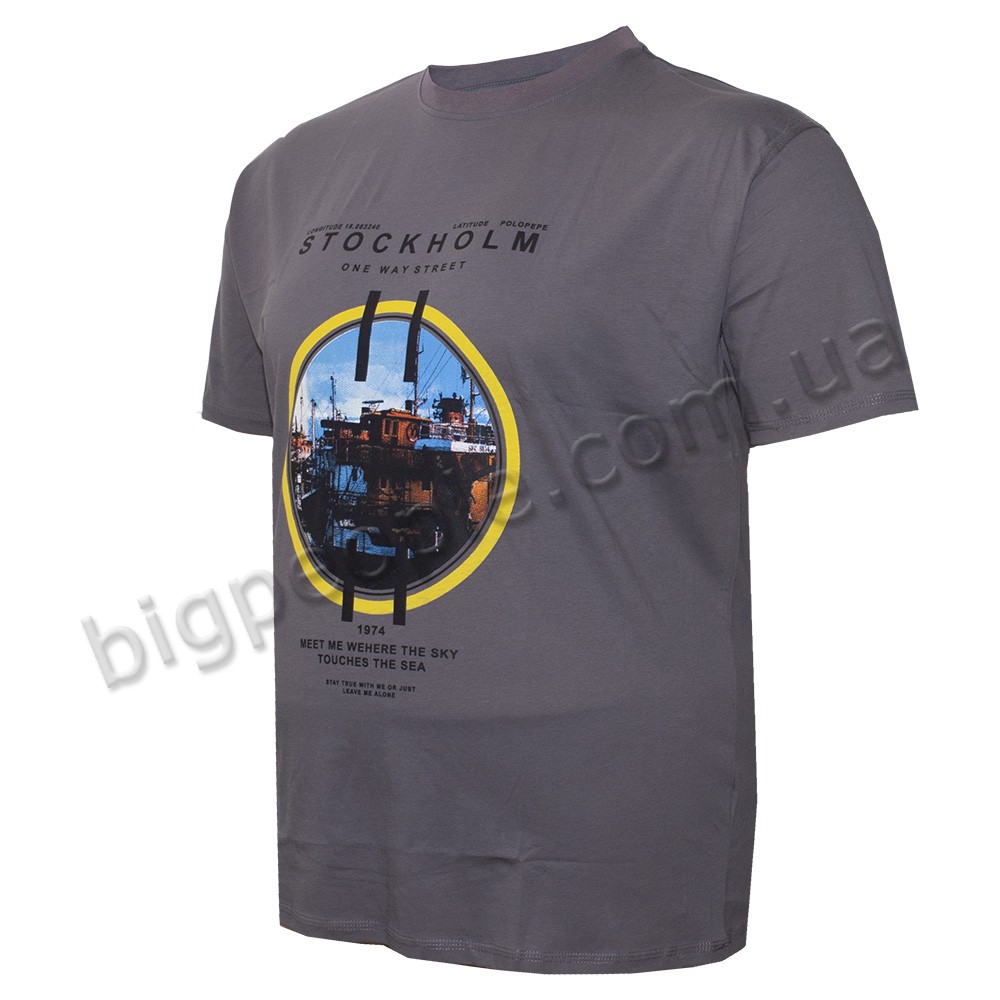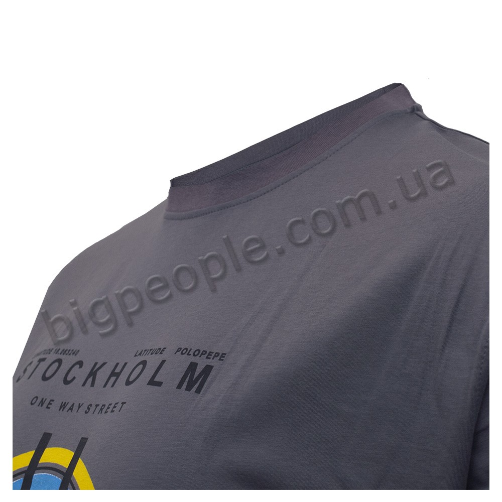 Футболка POLO PEPE для великих чоловіків. Колір сірий. На виробі присутній оригінальний малюнок. Виробництво Туреччина. Склад cotton (бавовна) 100%.