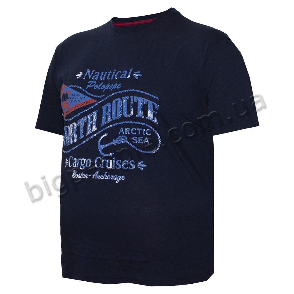 Футболка POLO PEPE для великих чоловіків. Колір темно-синій. На виробі присутній оригінальний малюнок. Виробництво Туреччина. Склад cotton (бавовна) 100%.
