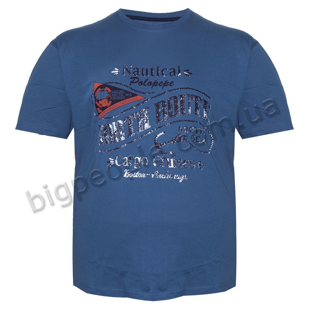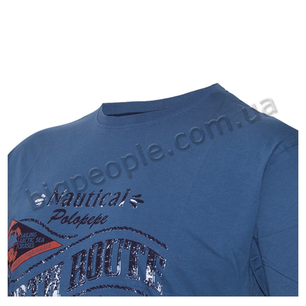 Футболка POLO PEPE для великих чоловіків. Колір синій. На виробі присутній оригінальний малюнок. Виробництво Туреччина. Склад cotton (бавовна) 100%.