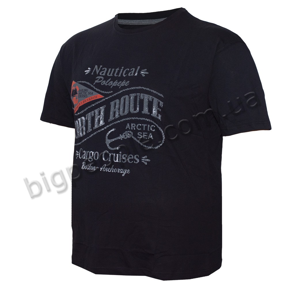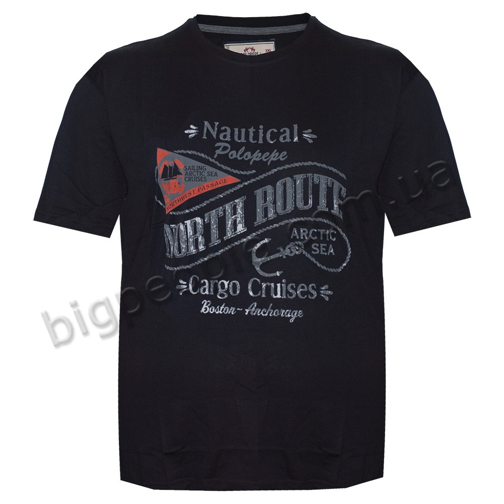Футболка POLO PEPE для великих чоловіків. Колір чорний. На виробі присутній оригінальний малюнок. Виробництво Туреччина. Склад cotton (бавовна) 100%.
