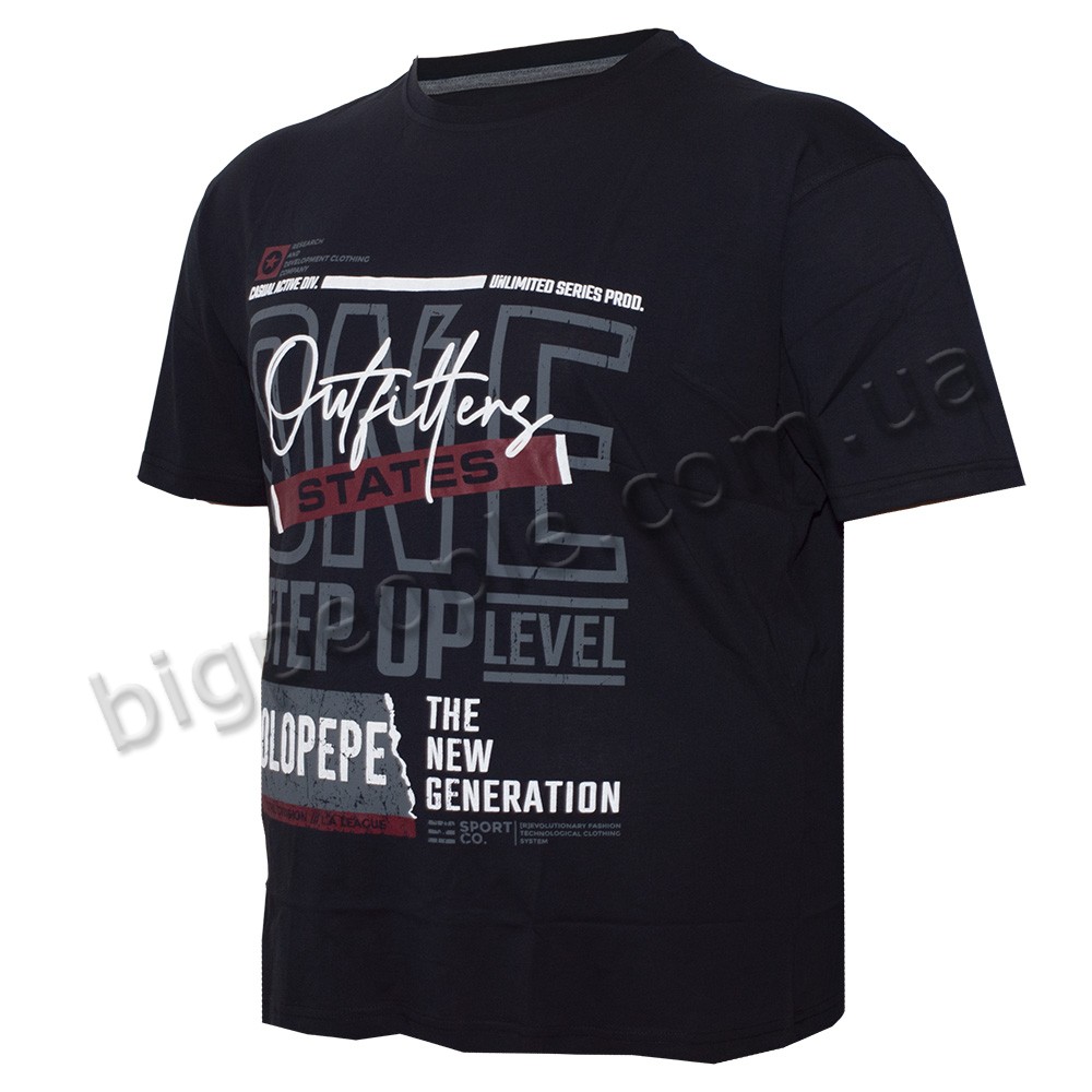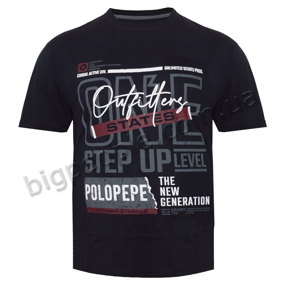 Футболка POLO PEPE для великих чоловіків. Колір чорний. На виробі присутній оригінальний малюнок. Виробництво Туреччина. Склад cotton (бавовна) 100%.