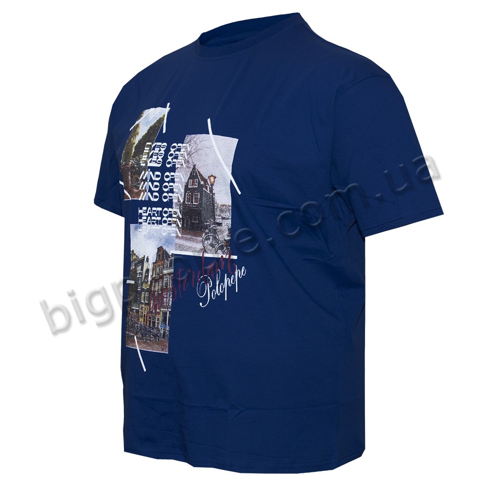 Мужская футболка великого розміру POLO PEPE для чоловіків. Колір синій. На виробі присутній принт. Виробництво Туреччина. Склад cotton (бавовна) 100%.