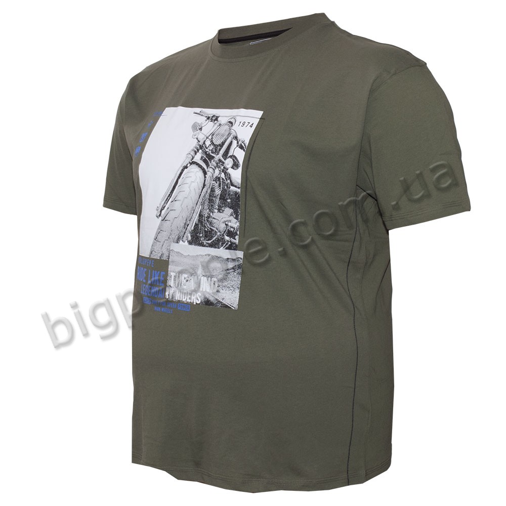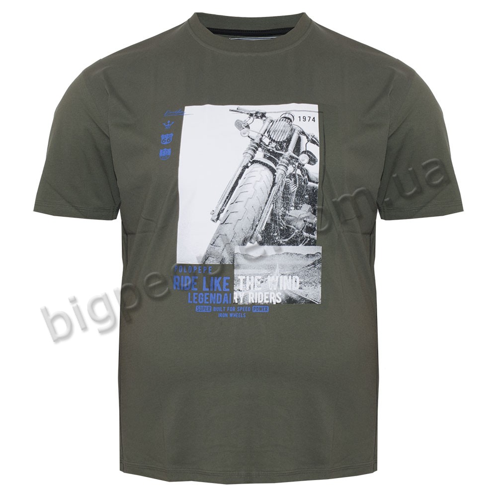 Футболка POLO PEPE великого розміру для чоловіків. Колір хакі. На виробі присутній оригінальний малюнок. Виробництво Туреччина. Склад cotton (бавовна) 100%.