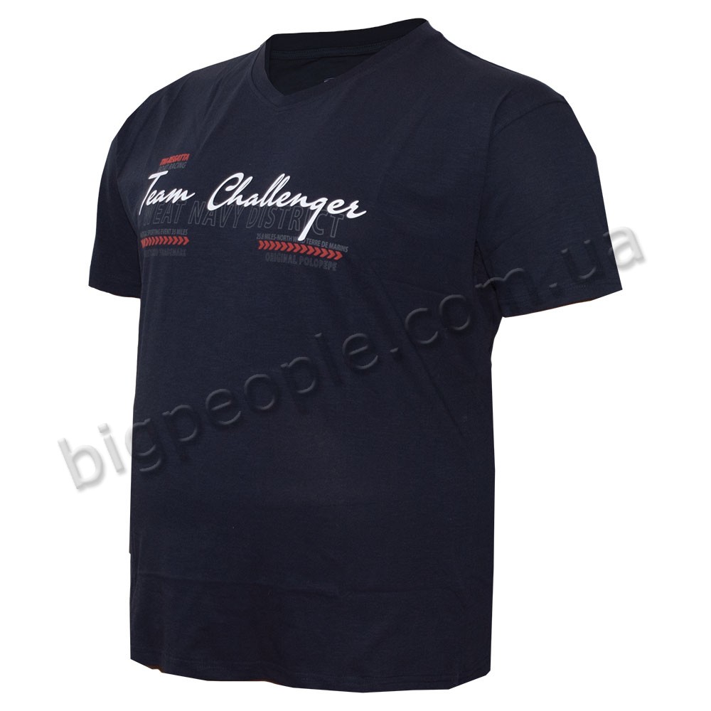 Футболка чоловіча POLO PEPE великого розміру. Колір темно-синій. Воріт V-подібний. (fu01346774)