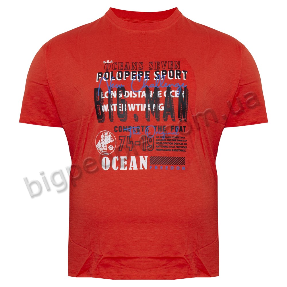 Футболка чоловіча POLO PEPE великого розміру. Колір червоний. Воріт напівкруглий. (fu01352590)