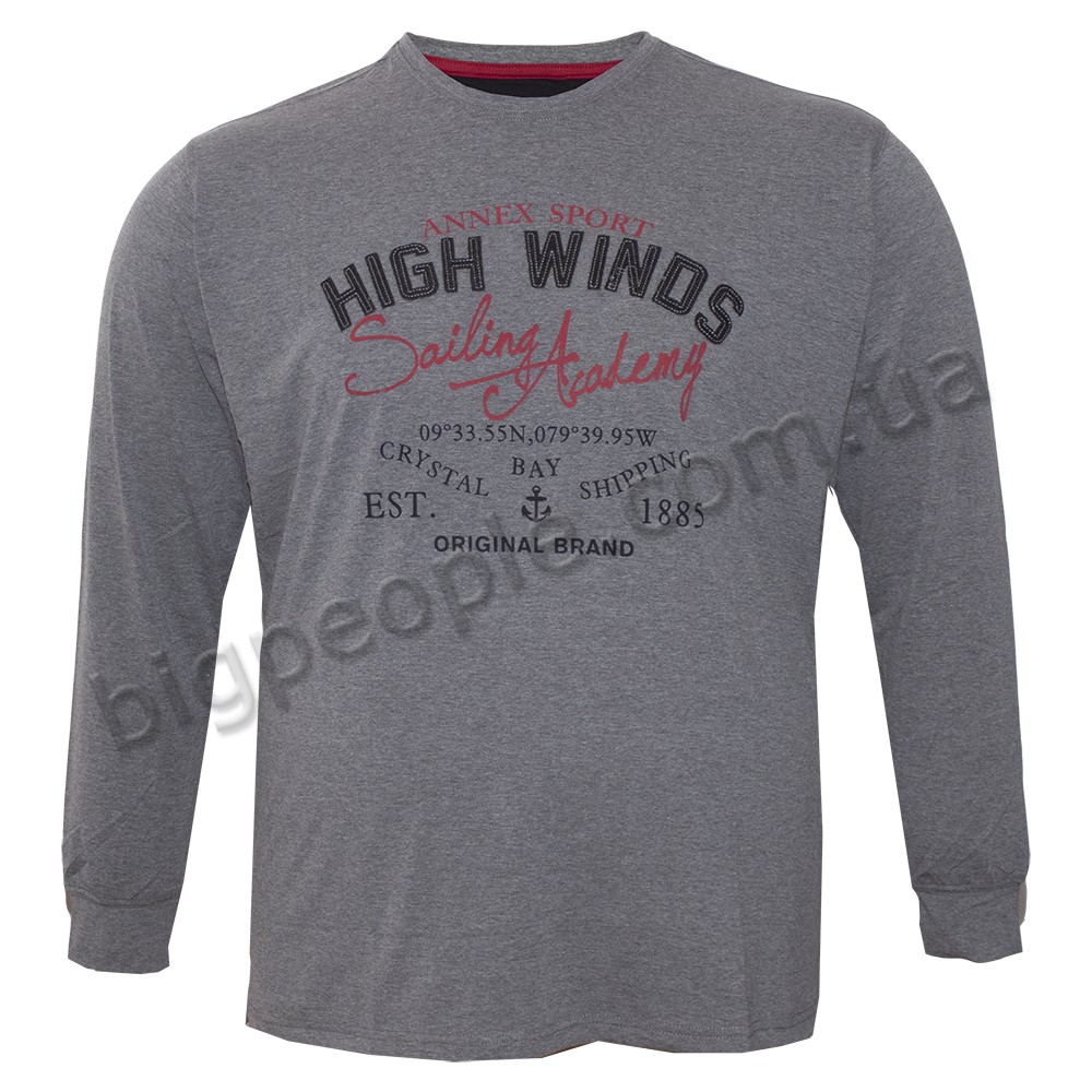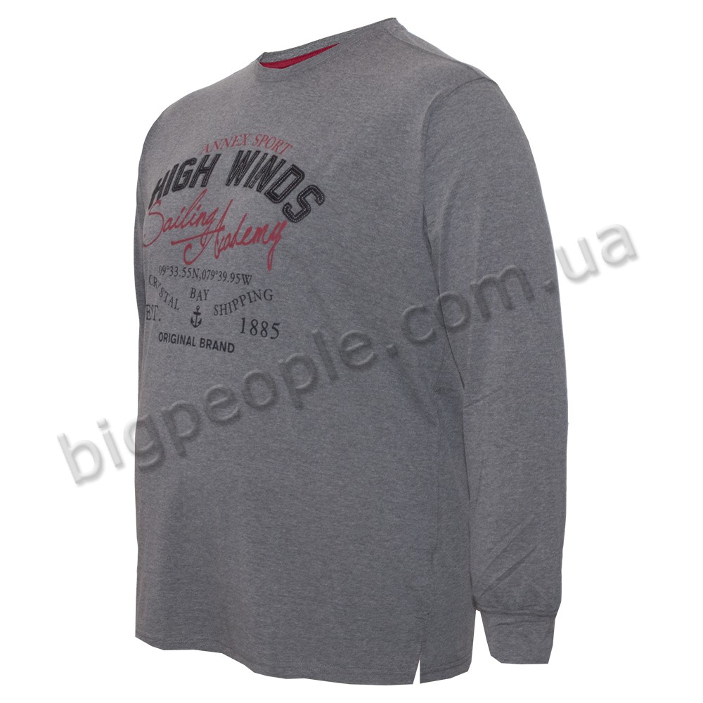 Сіра чоловіча футболка великого розміру з довгим рукавом ANNEX. Тонка легка модель. Комір напівкруглий. Низ прямий. Рукава на манжеті. Кишені відсутні. Попереду малюнок. Виробництво Туреччини. Склад cotton (бавовна) 95%, еластан 5%.
