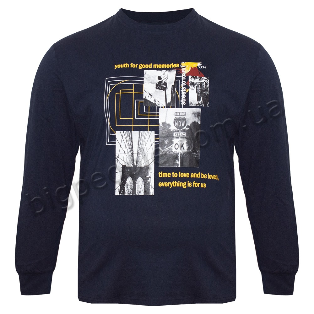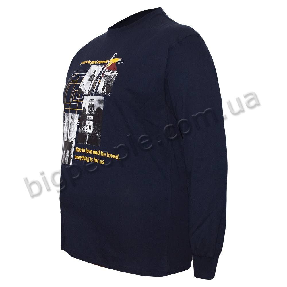 Футболка чоловіча з довгим рукавом POLO PEPE великого розміру. Колір темно-синій. Воріт напівкруглий. (fu01328009)