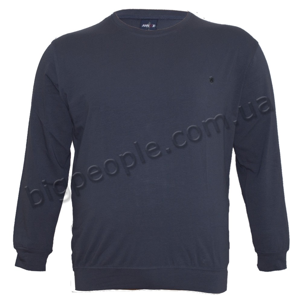 Сіра чоловіча футболка великого розміру з довгим рукавом ANNEX. Тонка легка модель. Комір напівкруглий. Вниз на манжеті (на резинці). Рукава на манжеті. Кишені відсутні. Попереду невелика емблема бренду. Виробництво Туреччини. Склад cotton (бавовна) 100%.